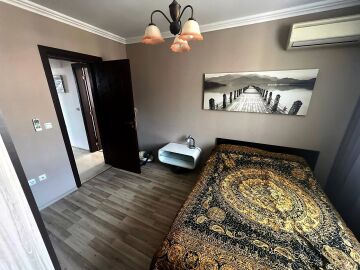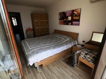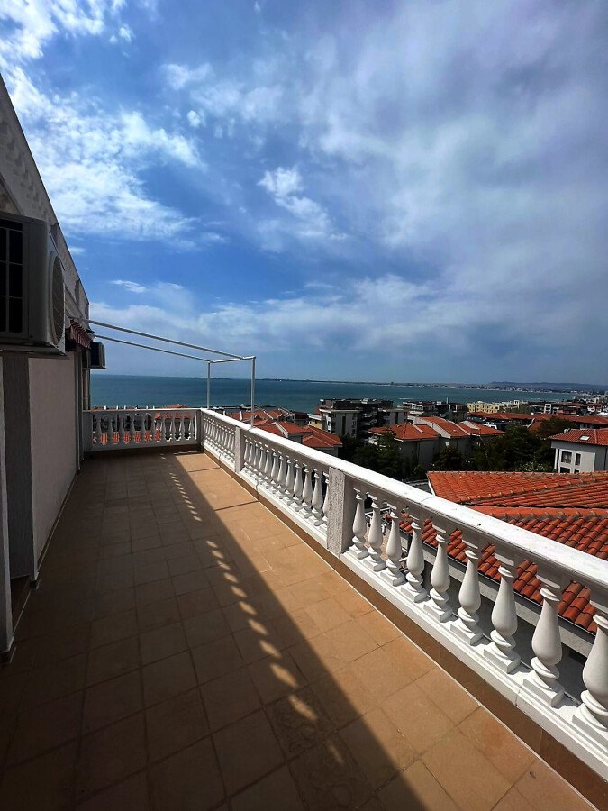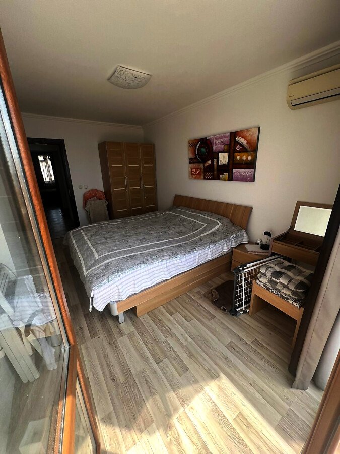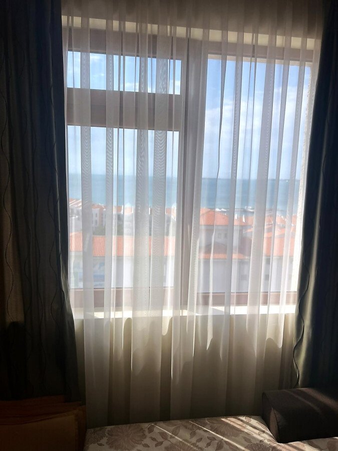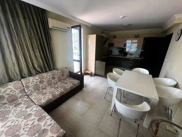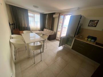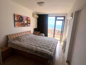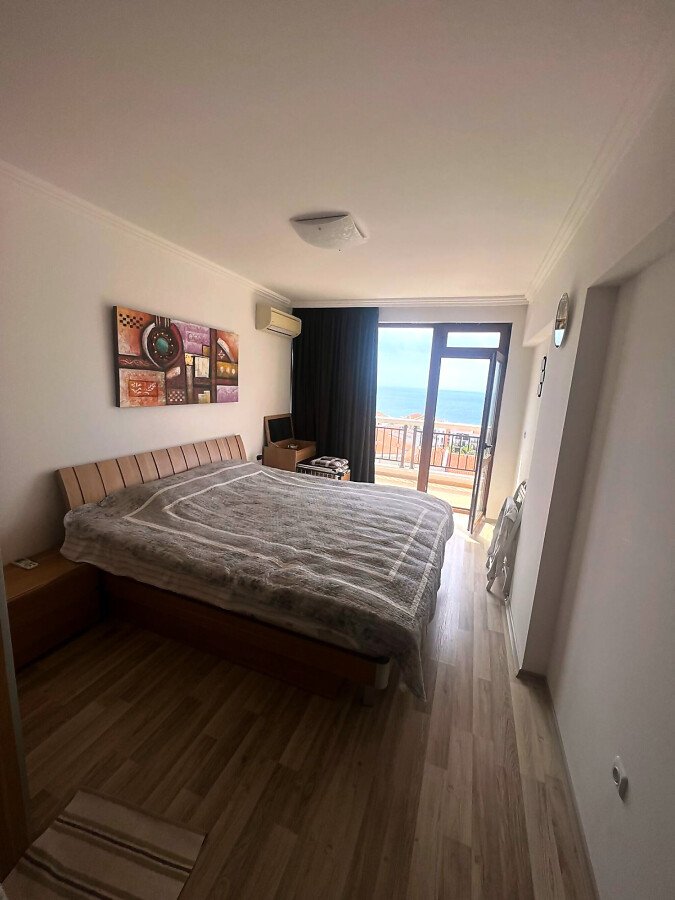 Има прекрасен балкон, от който се открива както пленителна морска панорама, така и красива гледка към планината. Апартаментът се намира на много комуникативно място, само на метри от пясъчните плажове на курорта.