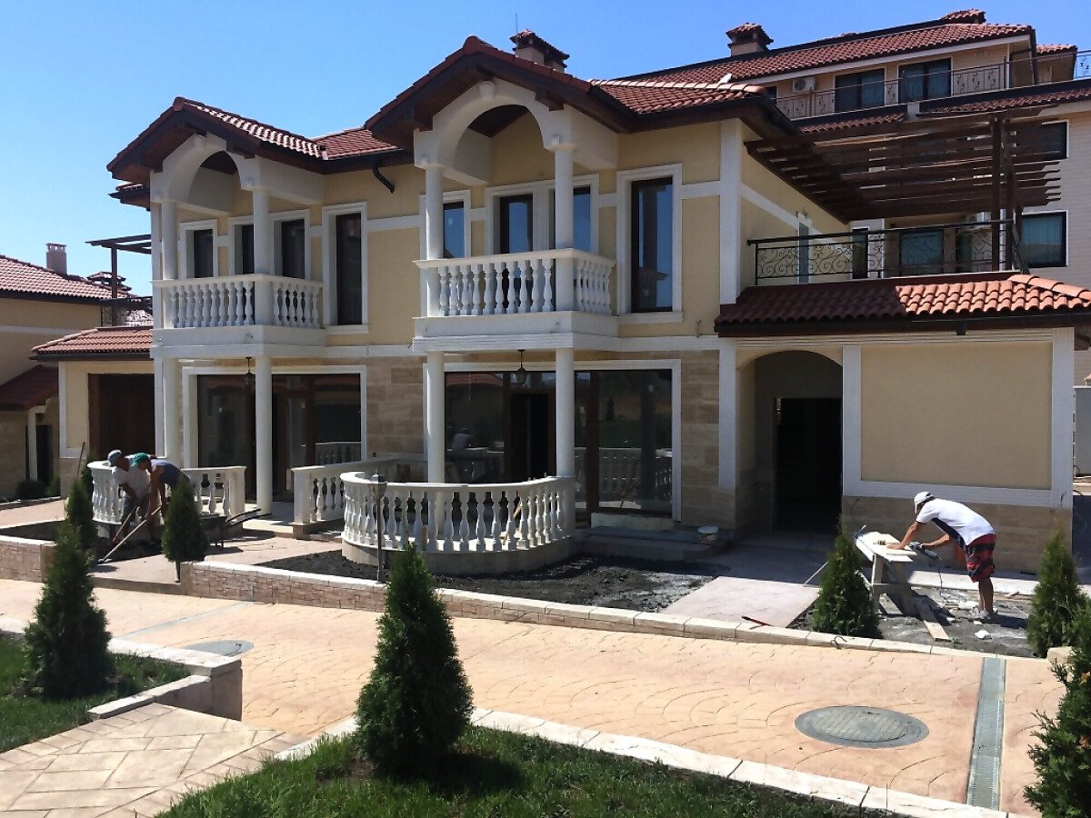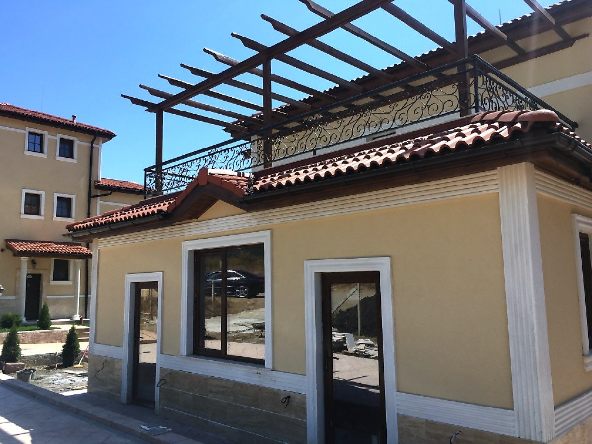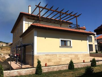 Къщата е с площ 180 кв.м. и е с отлично разположение. На първия етаж има просторен хол с кухня и трапезария и красива панорамна веранда. Тук са разположени още зона за отдих в ориенталски стил, перално помещение, баня и тоалетна. На втория етаж има 3 спални помещения с тераси.