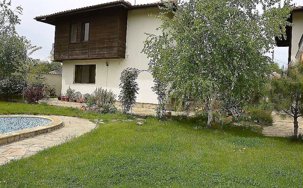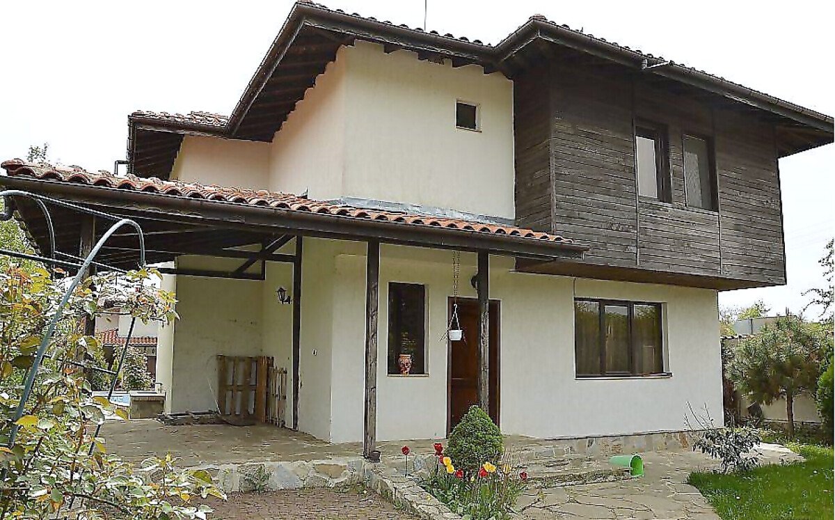 Къщата, която предлагаме за продажба е с площ от 181 кв.м и разполага с голям двор – 630 кв.м. Дизайнът й съчетава дърво и камък, което е било характерно за архитектурата на българските къщи в миналото.