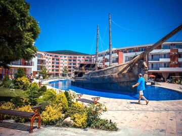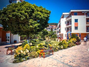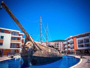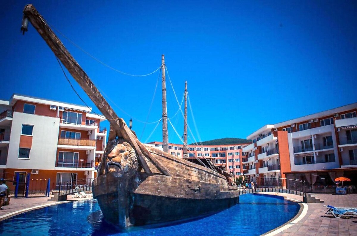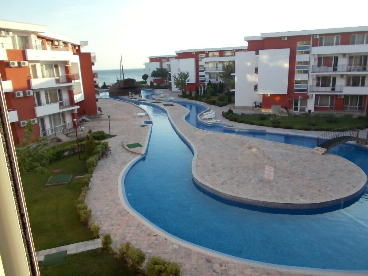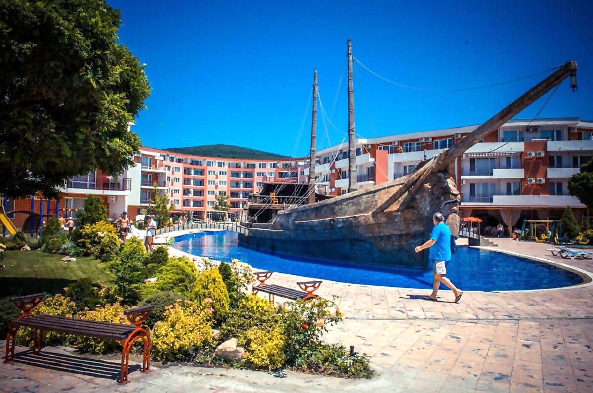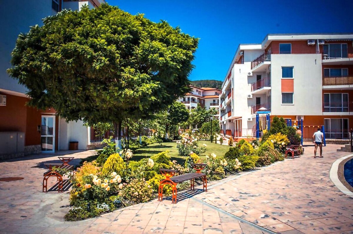 Комплексът е построен на първа линия от морето и впечатлява с обширната, добре озеленена и поддържана територия.