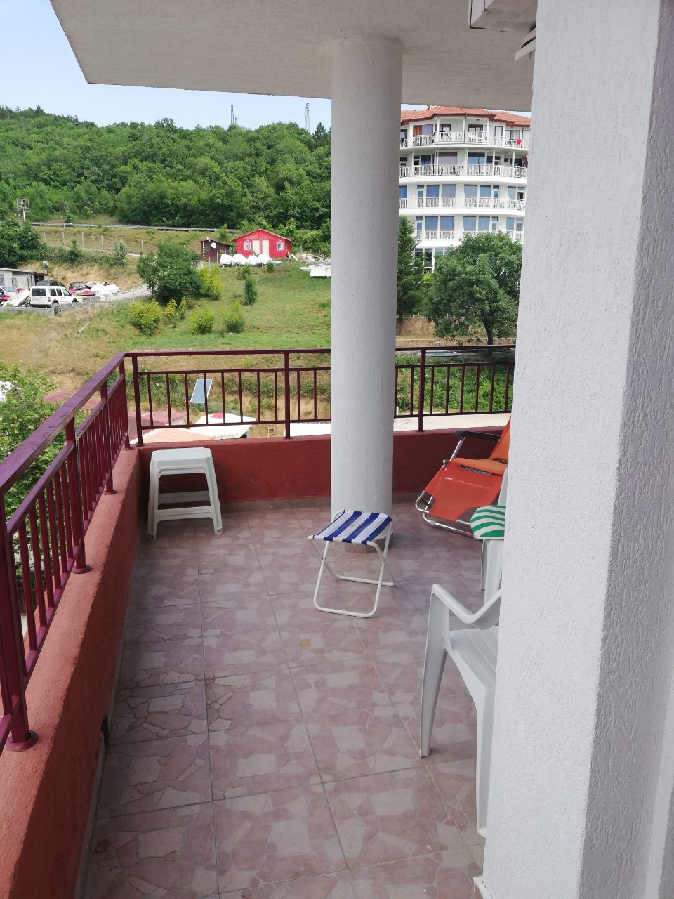 От терасата се открива прелестна гледка към гората, басейна и частично към морето.