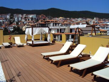 Страхотно предимство на „Вила Дали“ е наличието на уникална панорамна тераса на покрива, която разкрива великолепни гледки към залива на Несебър, Слънчев бряг и склоновете на Стара планина.