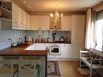 Уютно обзаведена с вкус и качествени мебели. В дневната има разкошна камина.