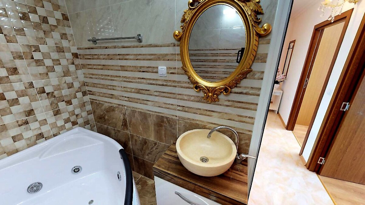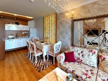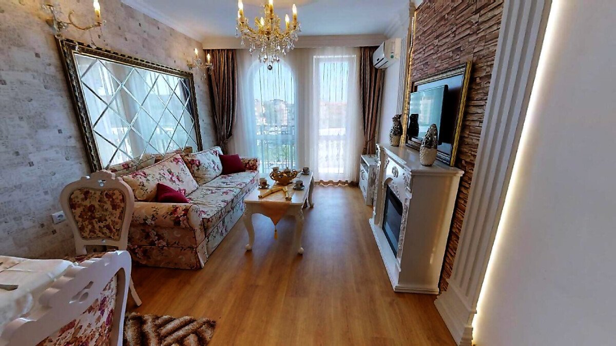 Площта на апартамента е 97 кв. м , има удобно разпределение и е обзаведен с луксозни мебели. Имотът се намира на първи жилищен етаж, а сградата има общо седем етажа.