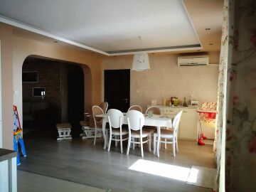 Жилището е с площ 135 кв.м и се състои от просторна дневна с кухня и трапезария, две спални, две бани и две тераси.