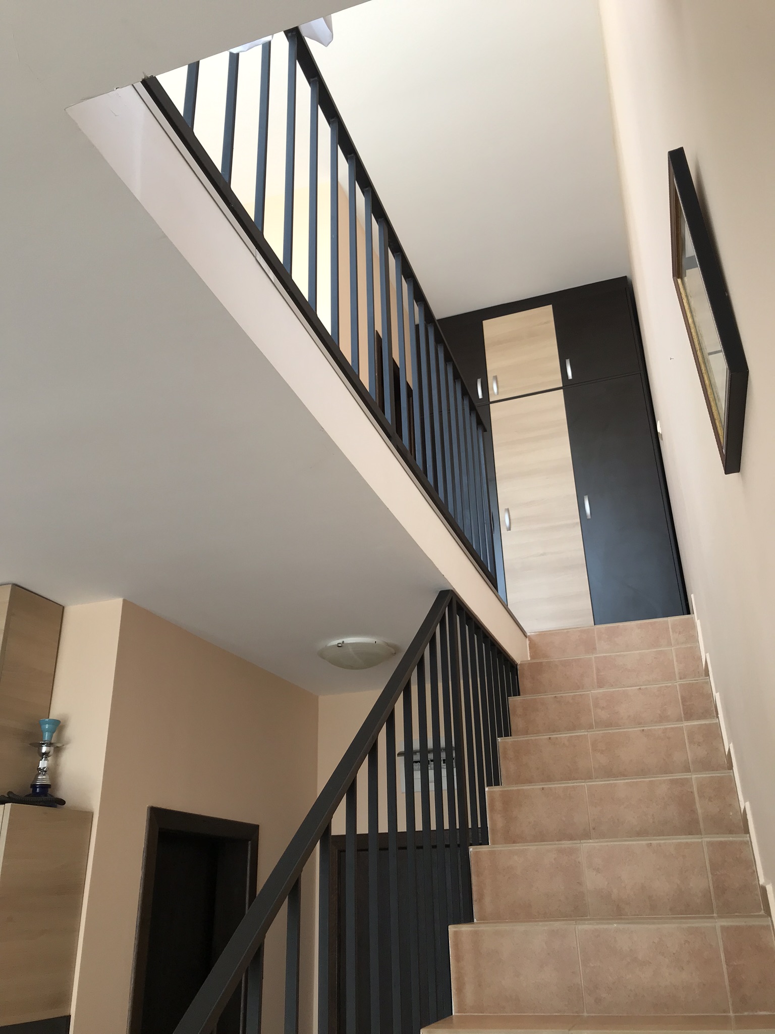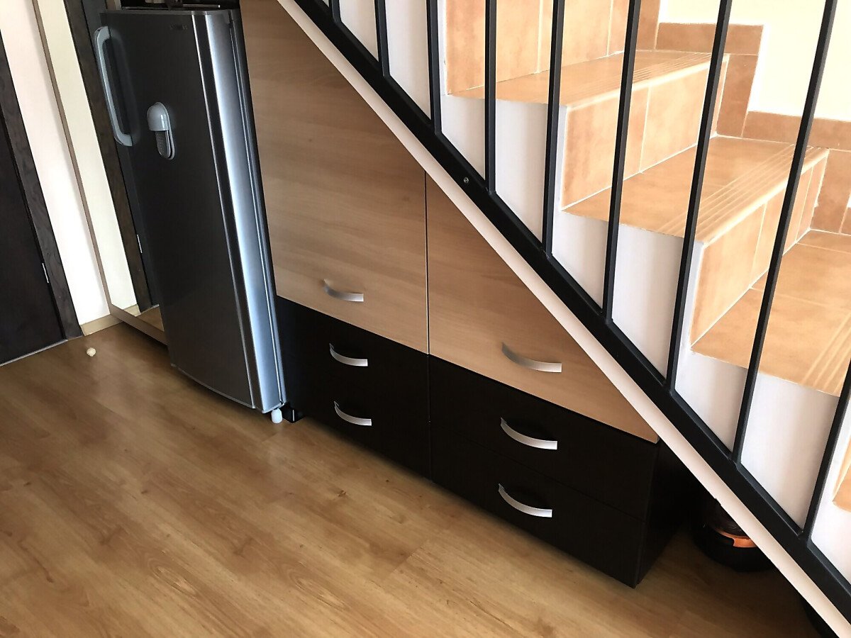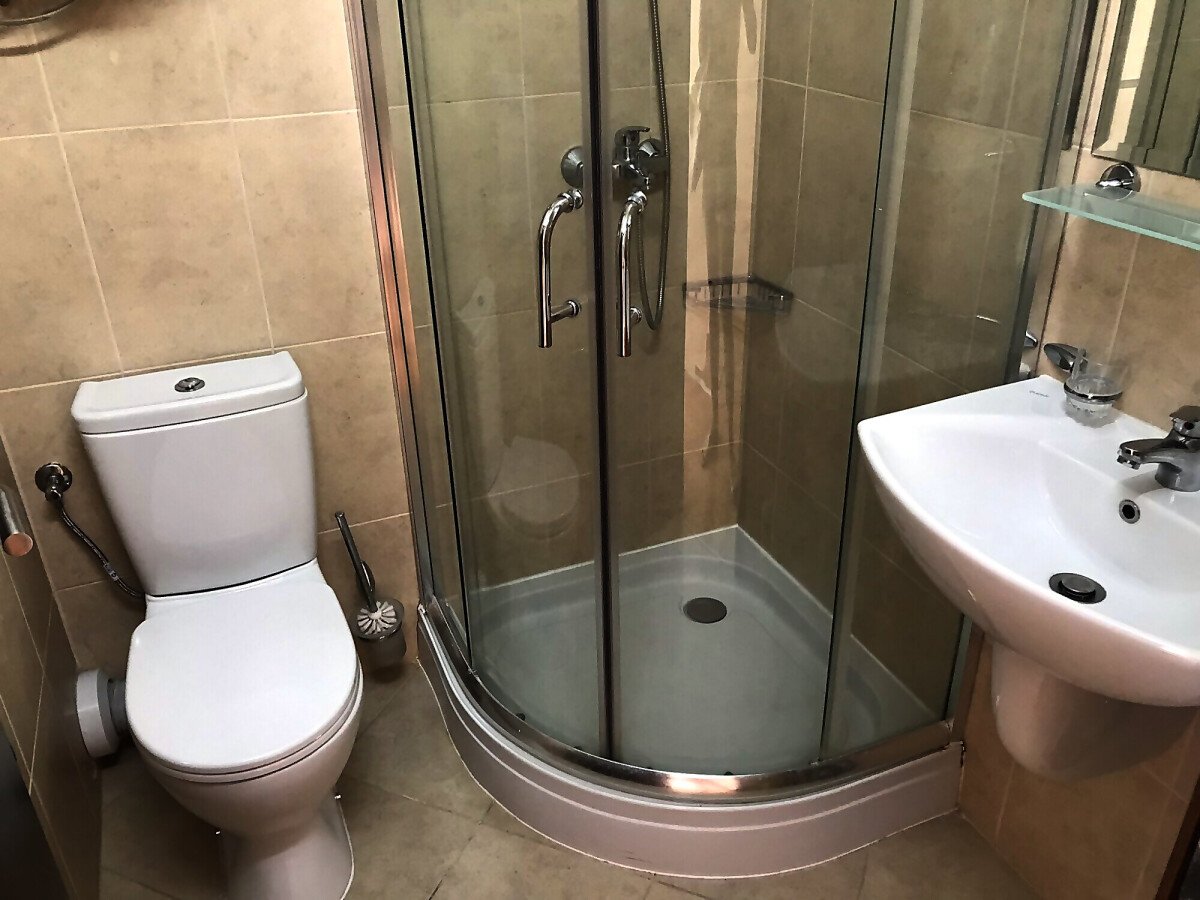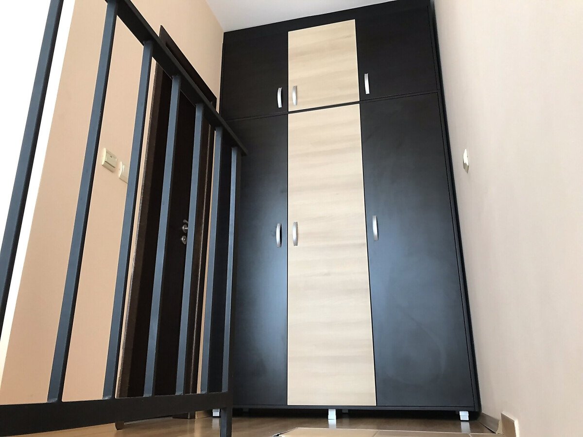 Апартаментът се намира на четвърти и пети етаж, изцяло обзаведен и оборудван с необходимите електроуреди, площта му е 68 кв.м и предлага следното разпределение: