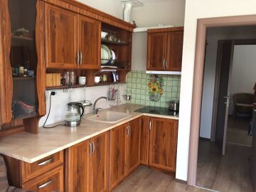 Апартаментът е с площ 50 кв.м. и е разположен на първия етаж. Състои се от дневна с кухненски бокс и кът за хранене, спалня, баня и тоалетна. Жилището е елегантно и уютно и се предлага с наличното обзавеждане и оборудване.