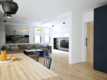 Имотът се предлага необзаведен, има изработен дизайнерски проект в скандинавски стил с подробни и точни размери.