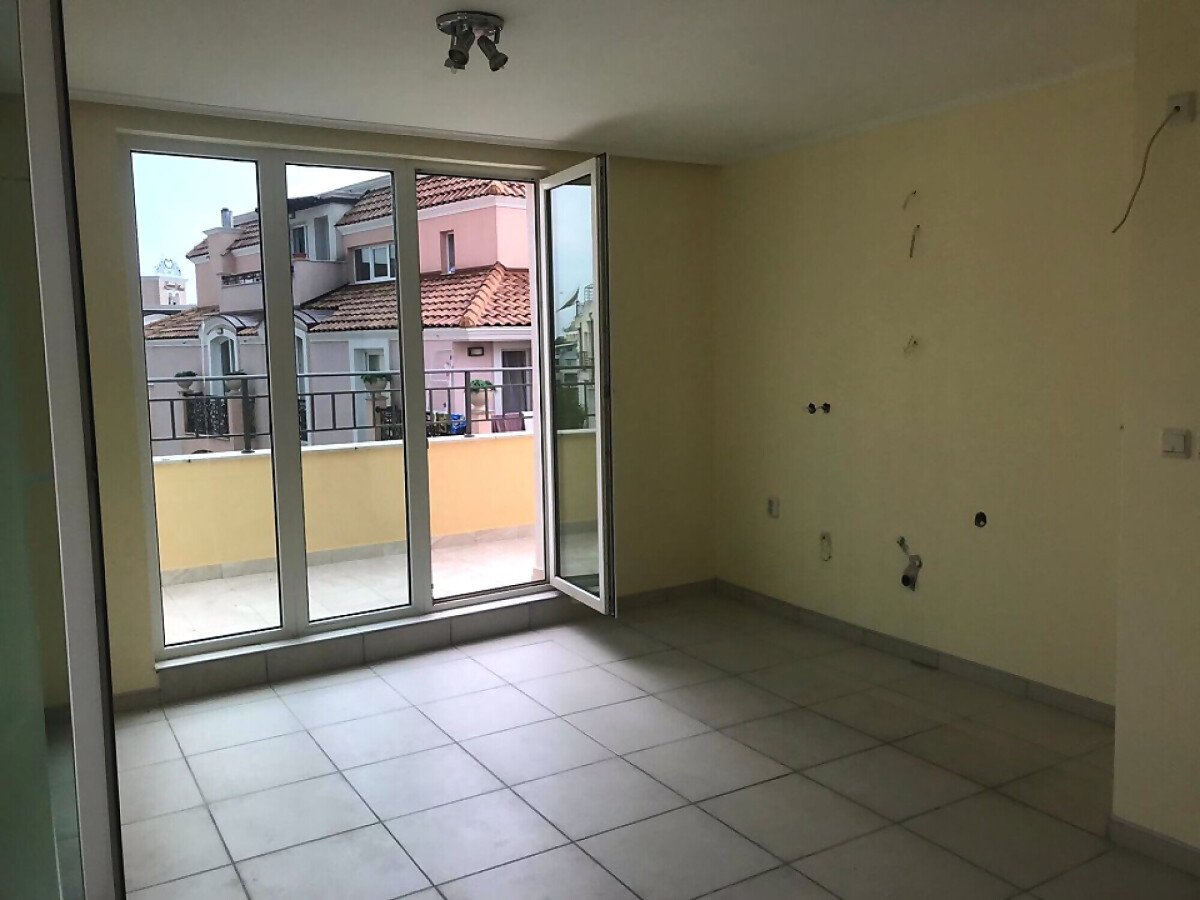 Апартаментът е просторен (70 кв.м) и светъл, разположен на шестия етаж и се предлага необзаведен. Това Ви дава възможност да го обзаведете изцяло по Ваш вкус и да го превърнете в уютен ваканционен дом.