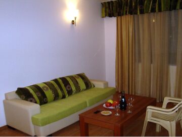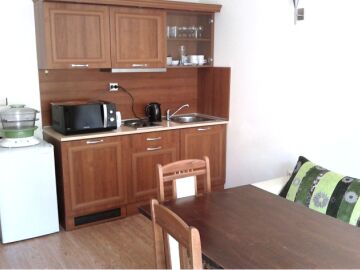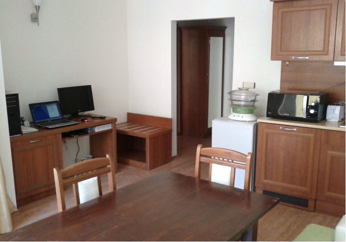 В дневната има разтегателен диван, трапезна маса, бюро, масичка за кафе, гардероб.