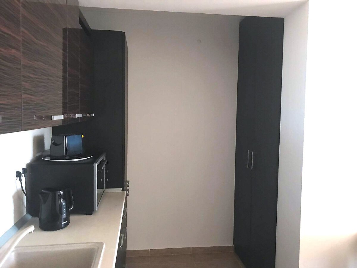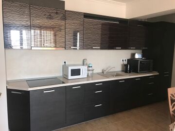 Апартаментът се намира на шестия етаж и се предлага напълно обзаведен – стилни и модерни мебели, красива вградена кухня, функционално разпределение.