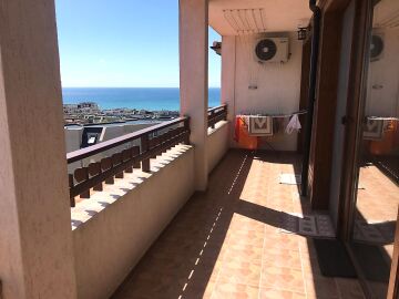 Жилището разполага с огромна тераса, която предлага страничен изглед към морето.