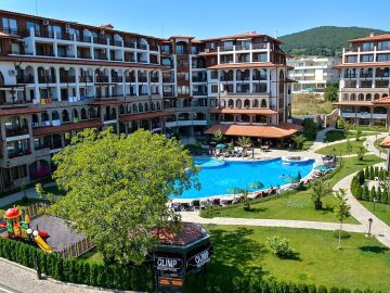 Комплексът представлява две големи сгради, а между тях има два басейна - за деца и възрастни и красива градина, която е озеленена и добре поддържана.