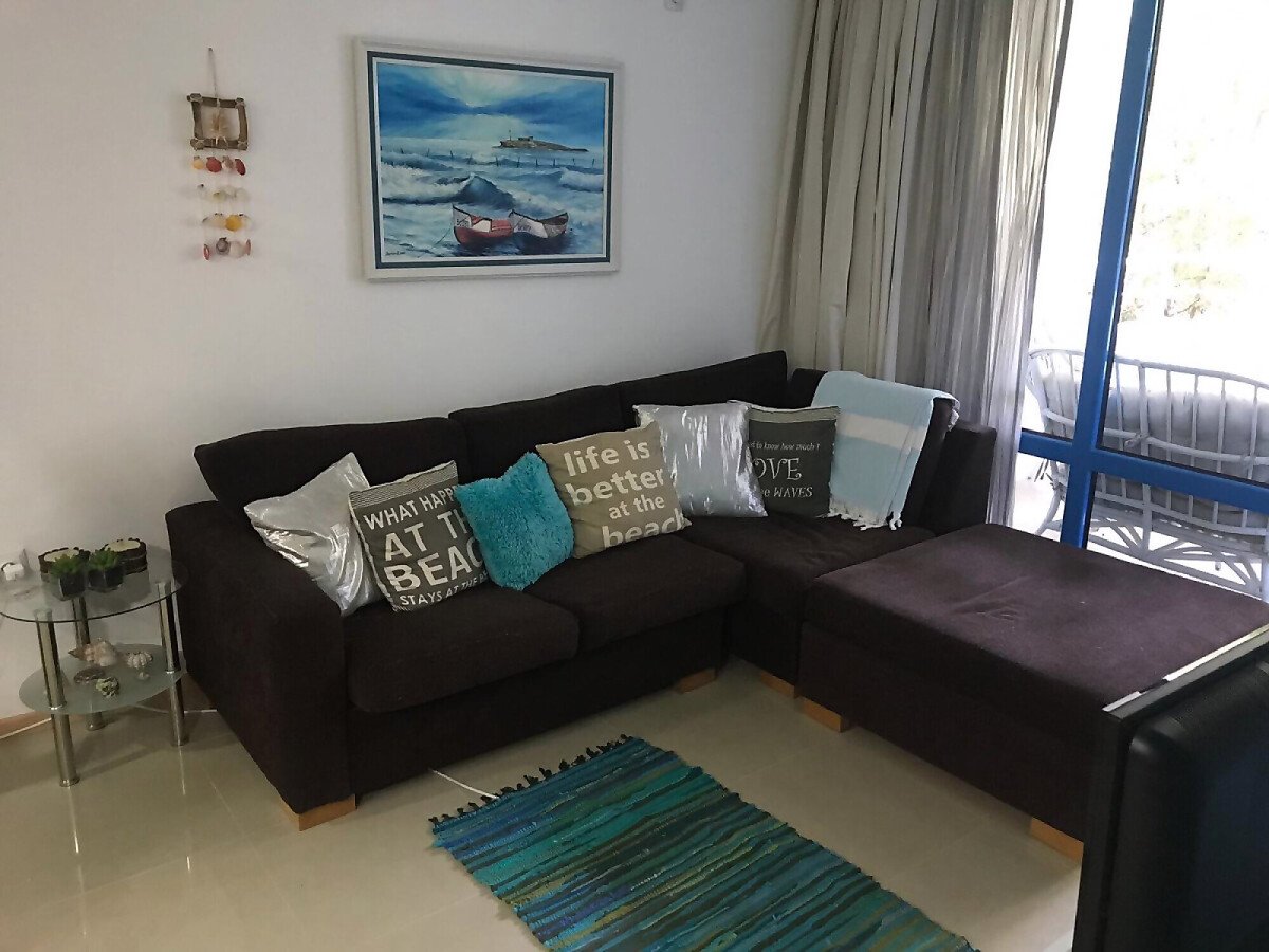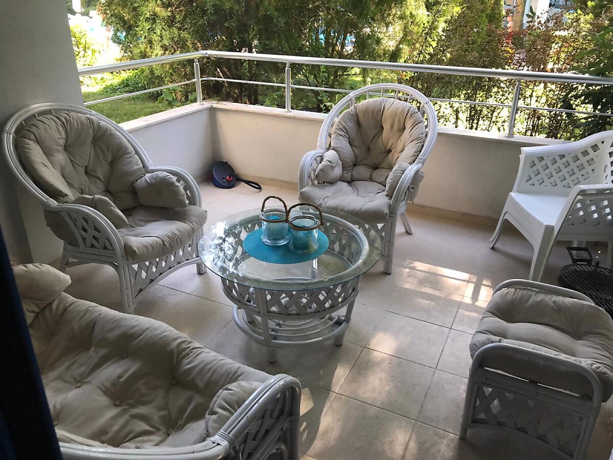 Апартаментът е разположен на първия етаж, площта му е 84 кв.м и се състои от две спални, дневна с кухня, баня с тоалетна и голяма тераса с удобни столове и маса, където можете да релаксирате и да прекарвате време със семейството или приятели.