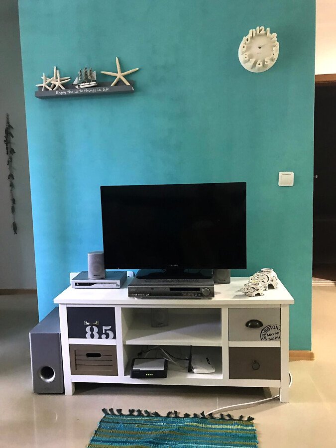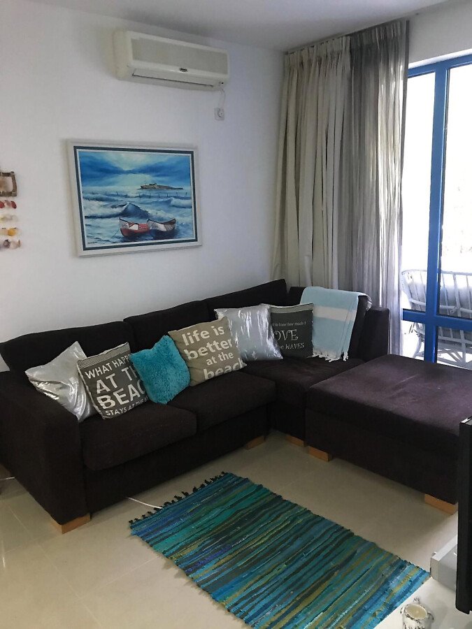 Страхотен дизайн с морска тематика, преобладаващите цветове са бяло, синьо, сиво и бежово. Изключително модерно и уютно жилище.