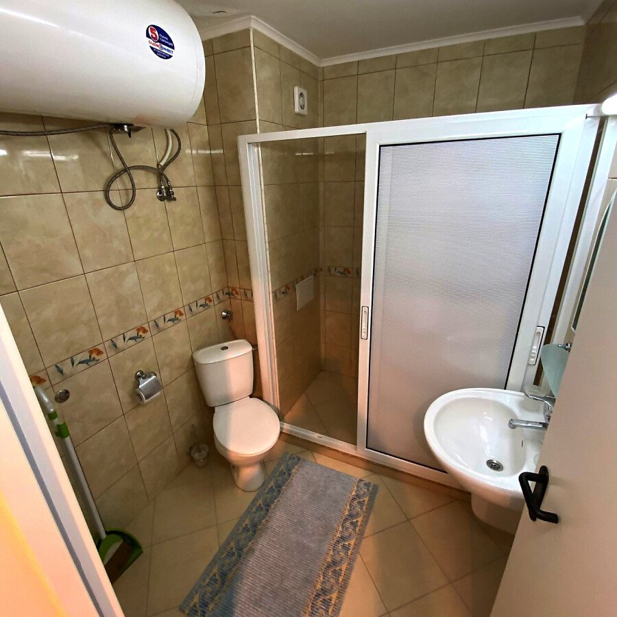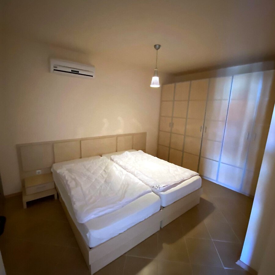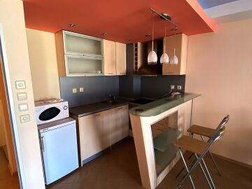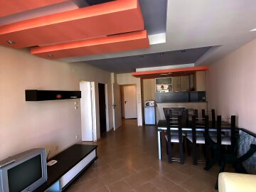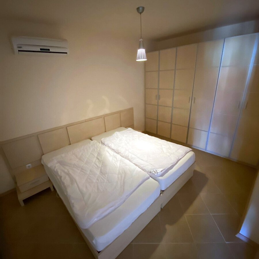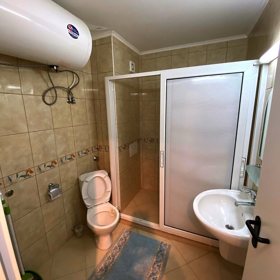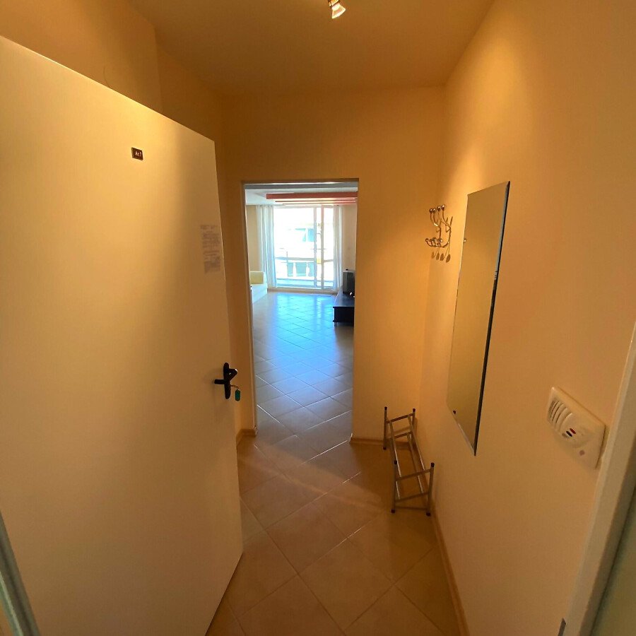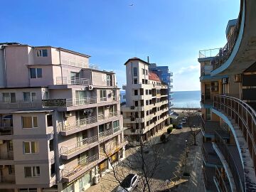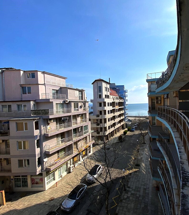 Апартаментът се намира на пети етаж в жилищна сграда, която е само на 100 м от плажа.