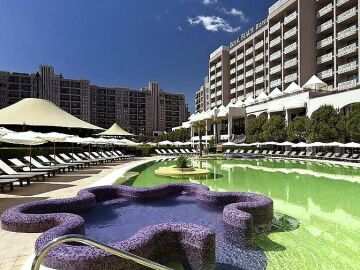 “Роял Бийч Барсело” е луксозен и има модерна и стилна архитектура и се намира в центъра на курорта.