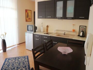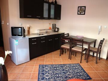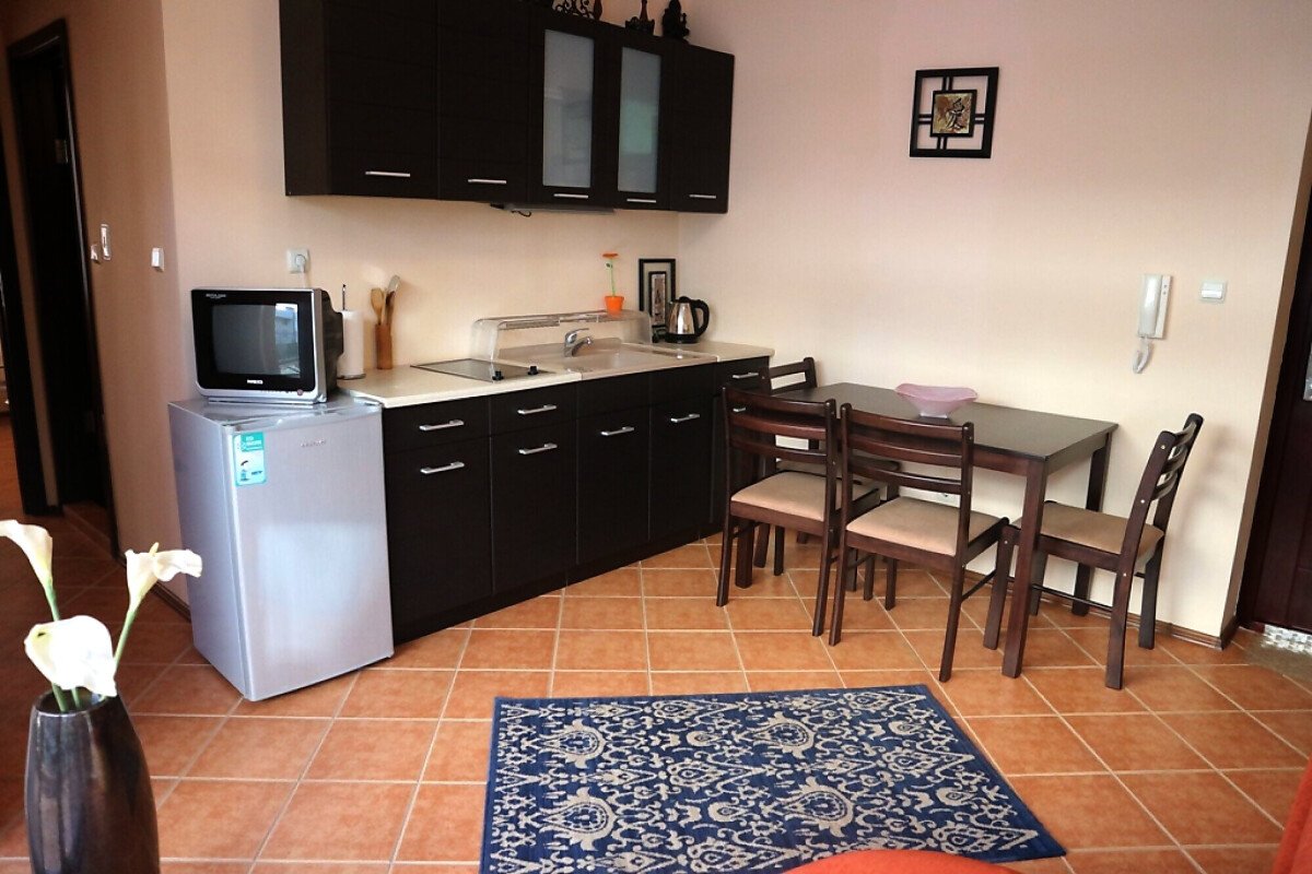 Имотът се намира далече от шумните алеи в курорта и можете да се наслаждавате на истинска почивка, спокойствие и тишина. В същото време сте достатъчно близо до всички удобства, които предлага Слънчев бряг.