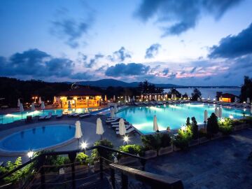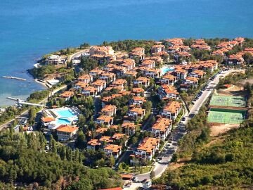 Уникалното му местоположение гарантира лесен достъп до невероятни плажове и прекрасни гледки. Комплексът е обгърнат в изобилие от зеленина и съчетава планински с морски климат, заобиколен е от борови гори и се намира над Царския плаж.