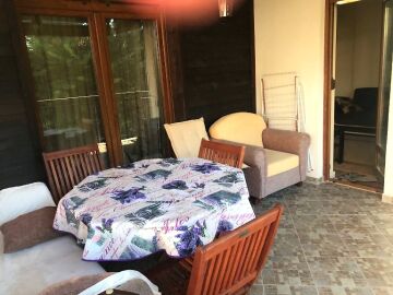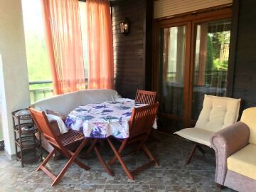 Площта му е 110 кв.м., състои се от хол с кухня, две спални, баня с тоалетна и прекрасна тераса.