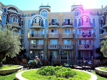 Комплексът е част от групата хотели Мелия и очарова с красивата си архитектура, невероятните градини с цветя и дървета и уникалната атмосфера, която създава за своите гости. Прекрасният двор създава неповторимо усещане за мир и спокойствие и повече напомня на лично пространство в имение. „Мелиа 8“ разполага още със собствен басейн с шезлонги, денонощна охрана и видеонаблюдение.