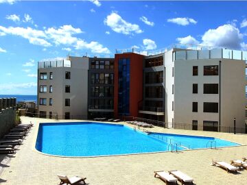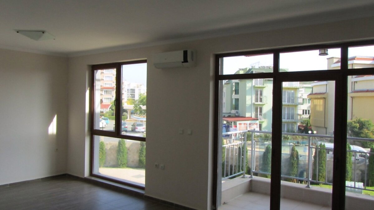 Апартаментът, който предлагаме за продажба има гледка към басейна и морето, Има поставена подова настилка – ламинат, а красивите френски прозорци правят стаите светли и уютни и разкриват чудесна панорамна гледка.