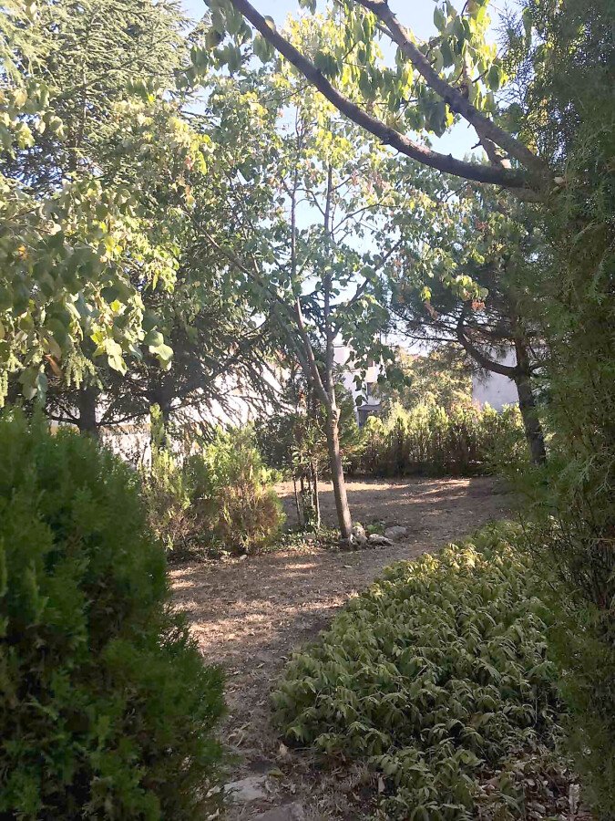 Парцелът е с площ 390 кв.м, има открит гараж с капацитет за два автомобила.
