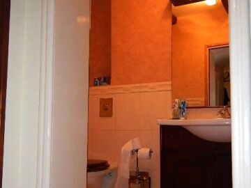 Къщата разполага с прекрасен двор, където растат цветя и вечнозелени храсти. Тук има и няколко допълнителни постройки, барбекю зона с навес, гараж за две коли.