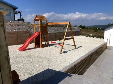 За максимален комфорт на собствениците, в комплекса е изградена детска площадка, модерен плувен басейн и паркинг.