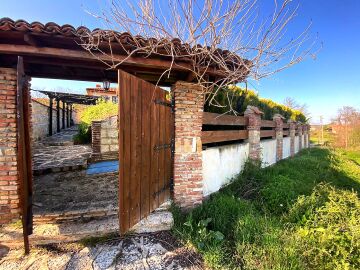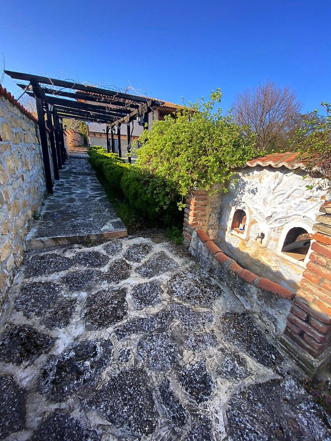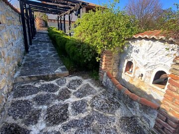 Имотът е заобиколен от огромна масивна ограда в стар български стил.
