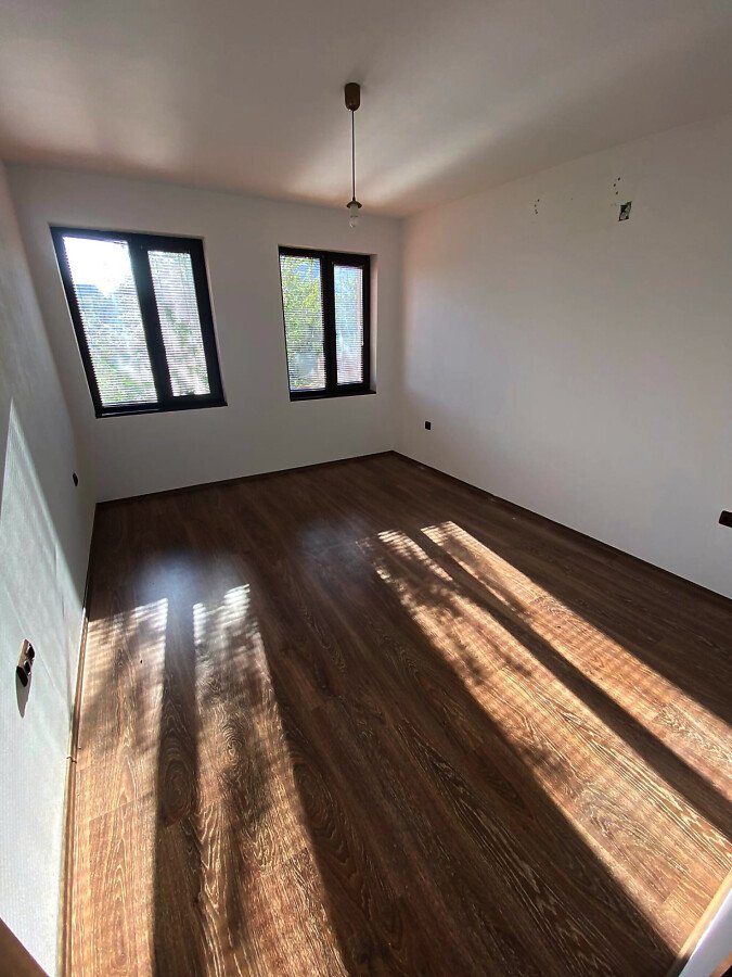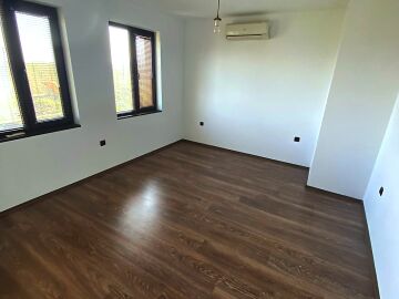 На вторият етаж са разположени три спални и две бани с тоалетни, като едната спалня е със собствена баня. От спалните има изход към голям закрит балкон.