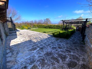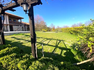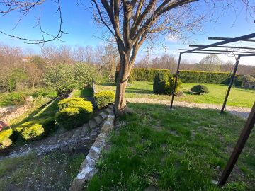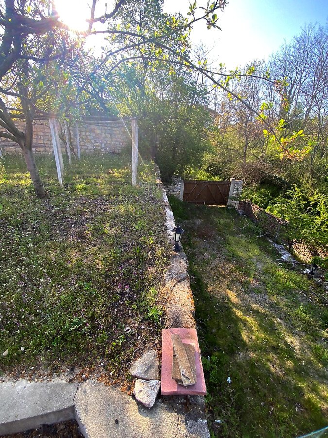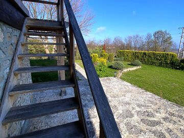 Градината е просторна, поддържана и озеленена. Има различни дръвчета и прекрасна каменна пътека.