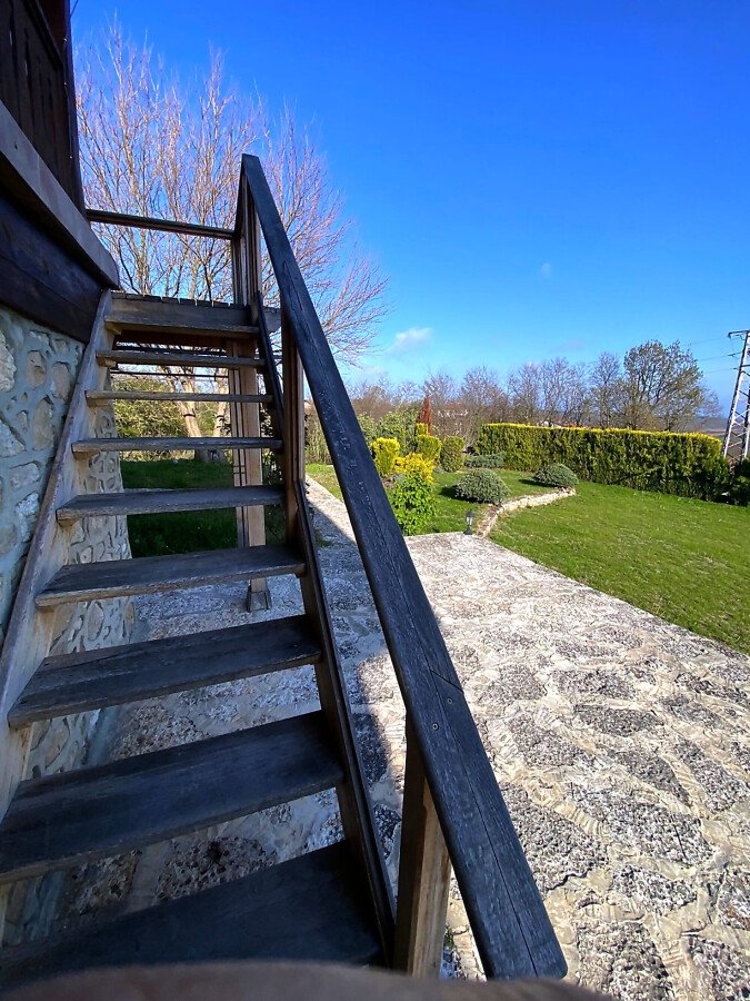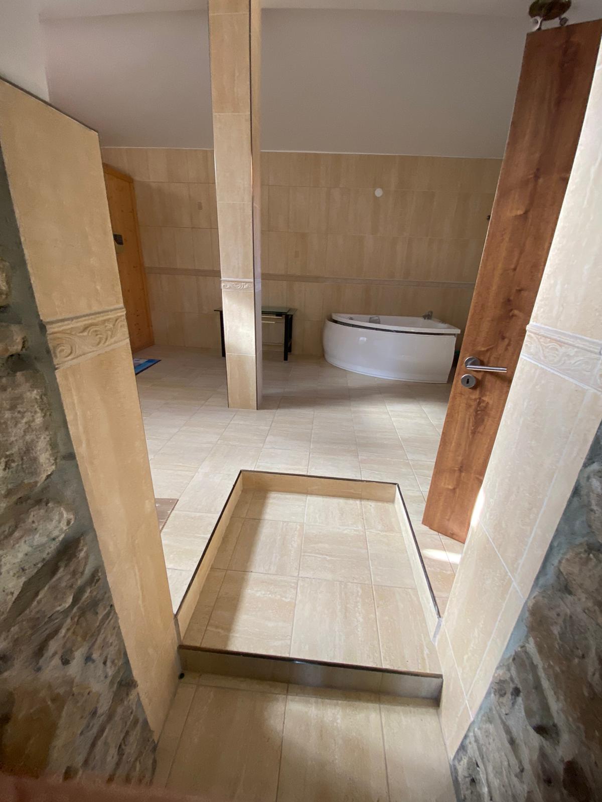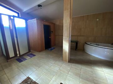 На първият етаж са разположени просторен хол, обзаведена и оборудвана кухня, малък спа-център с джакузи, сауна и баня.
