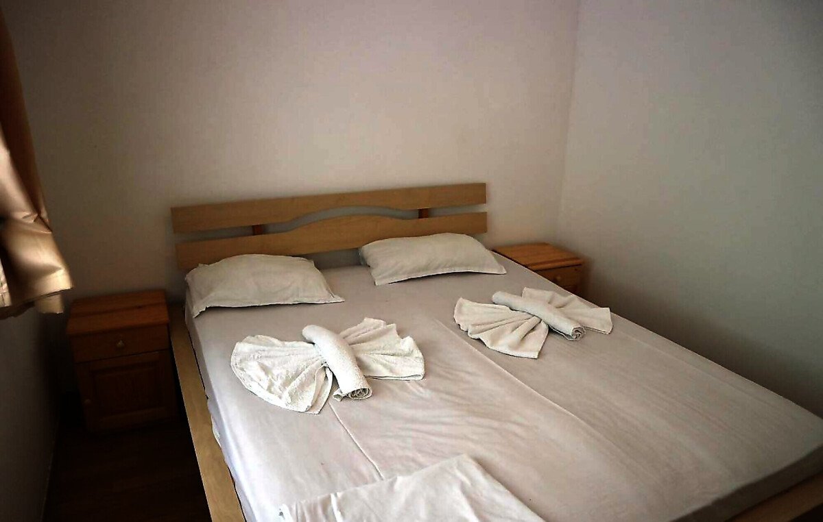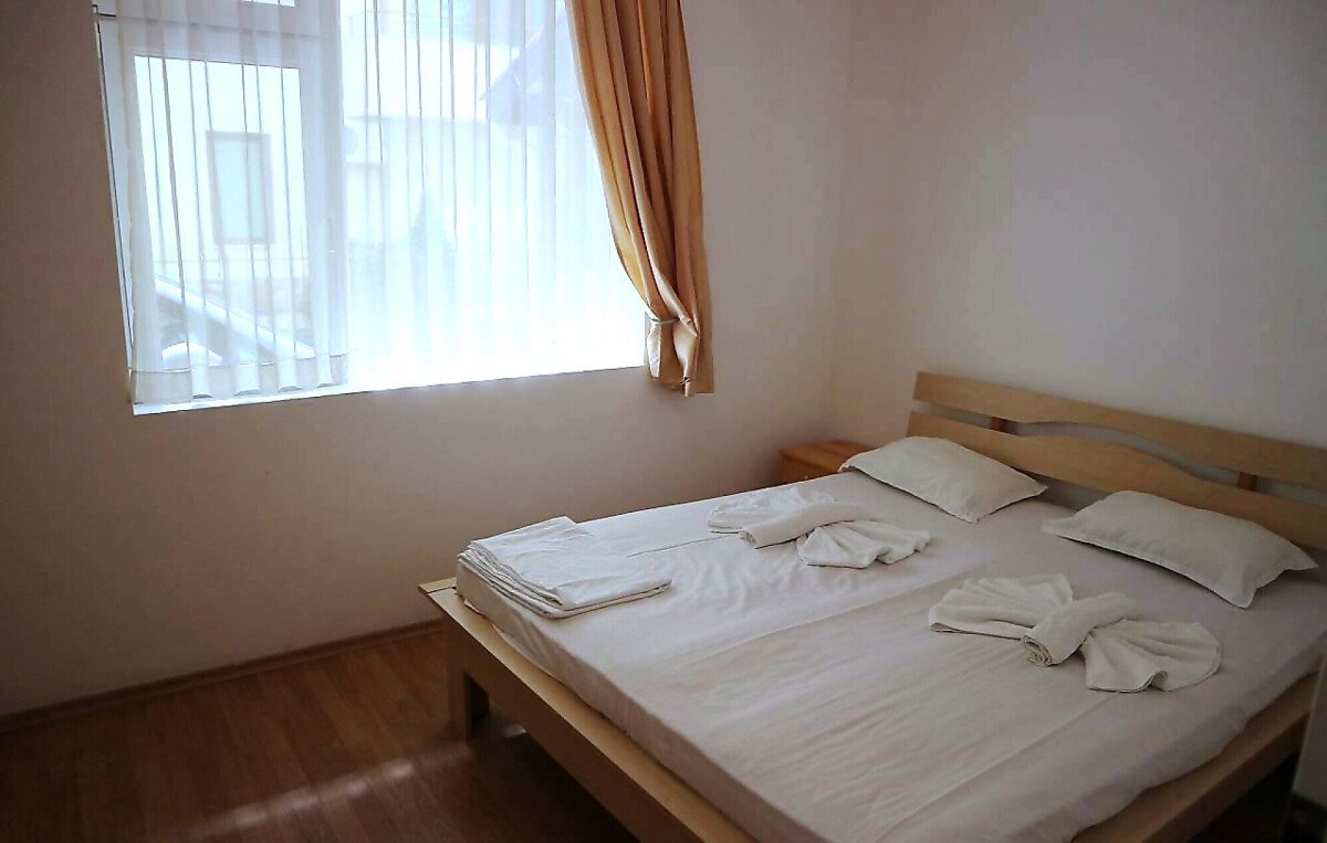 Състои се от хол с кухня, две спални, баня и тераса с гледка към градината. Този апартамент е напълно обзаведен.
