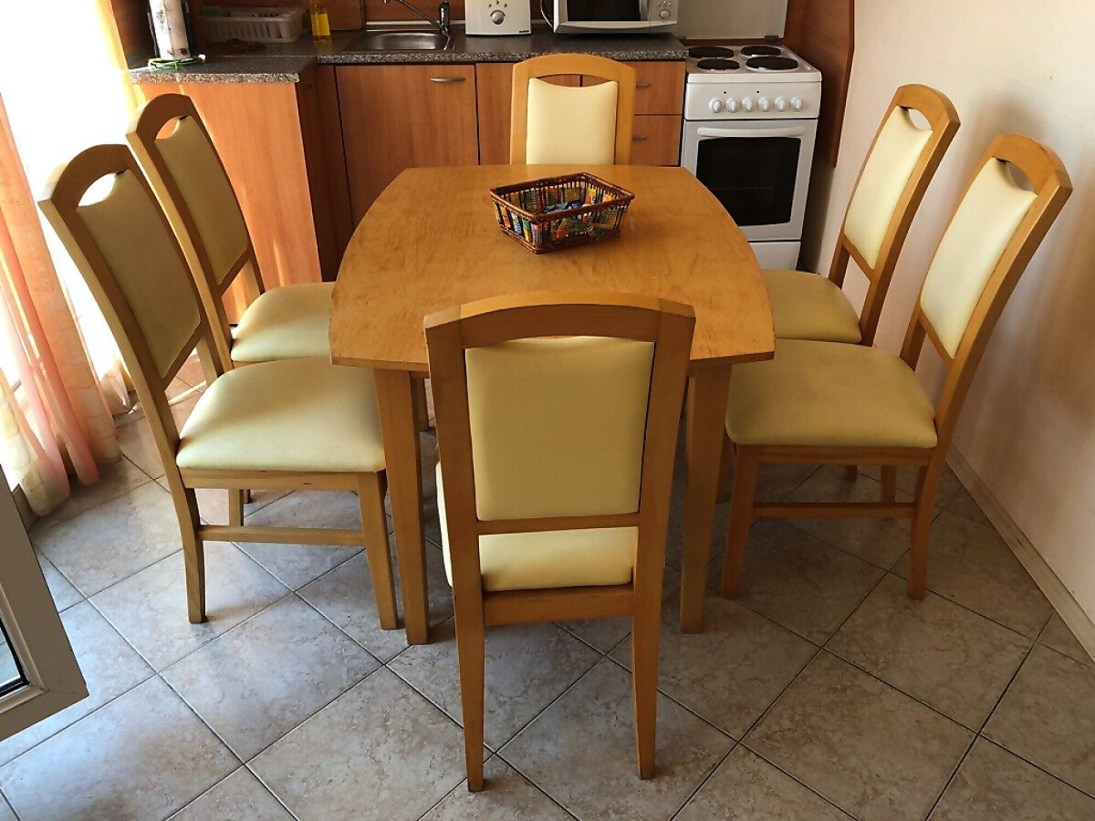 Този уникален апартамент е напълно обзаведен и готов за живеене. Разполага с хол и кухня с трапезария, две спални, баня, отделна тоалетна и две тераси с гледка към басейна.