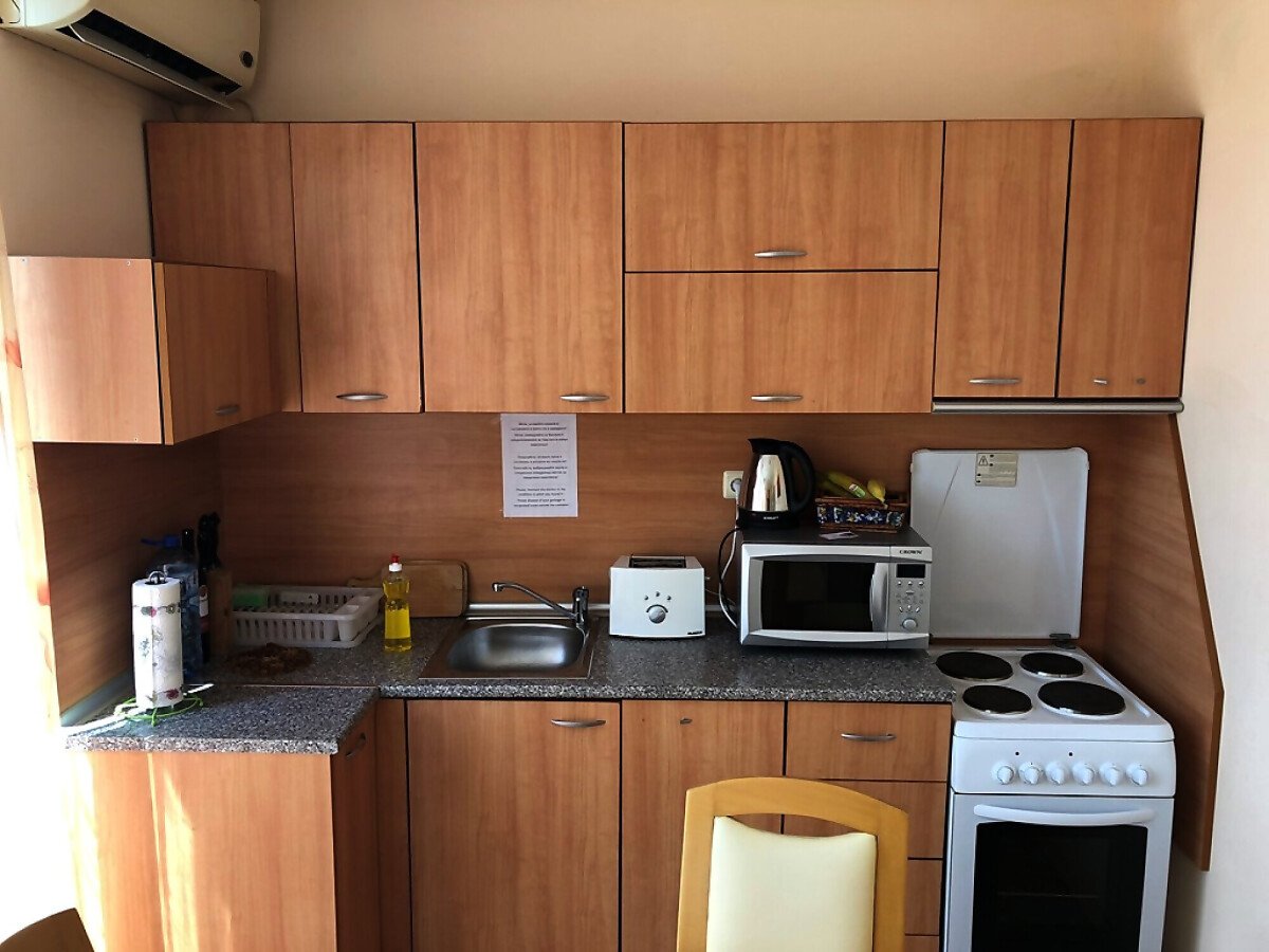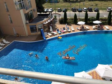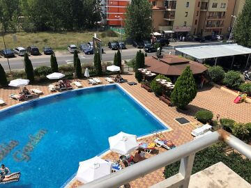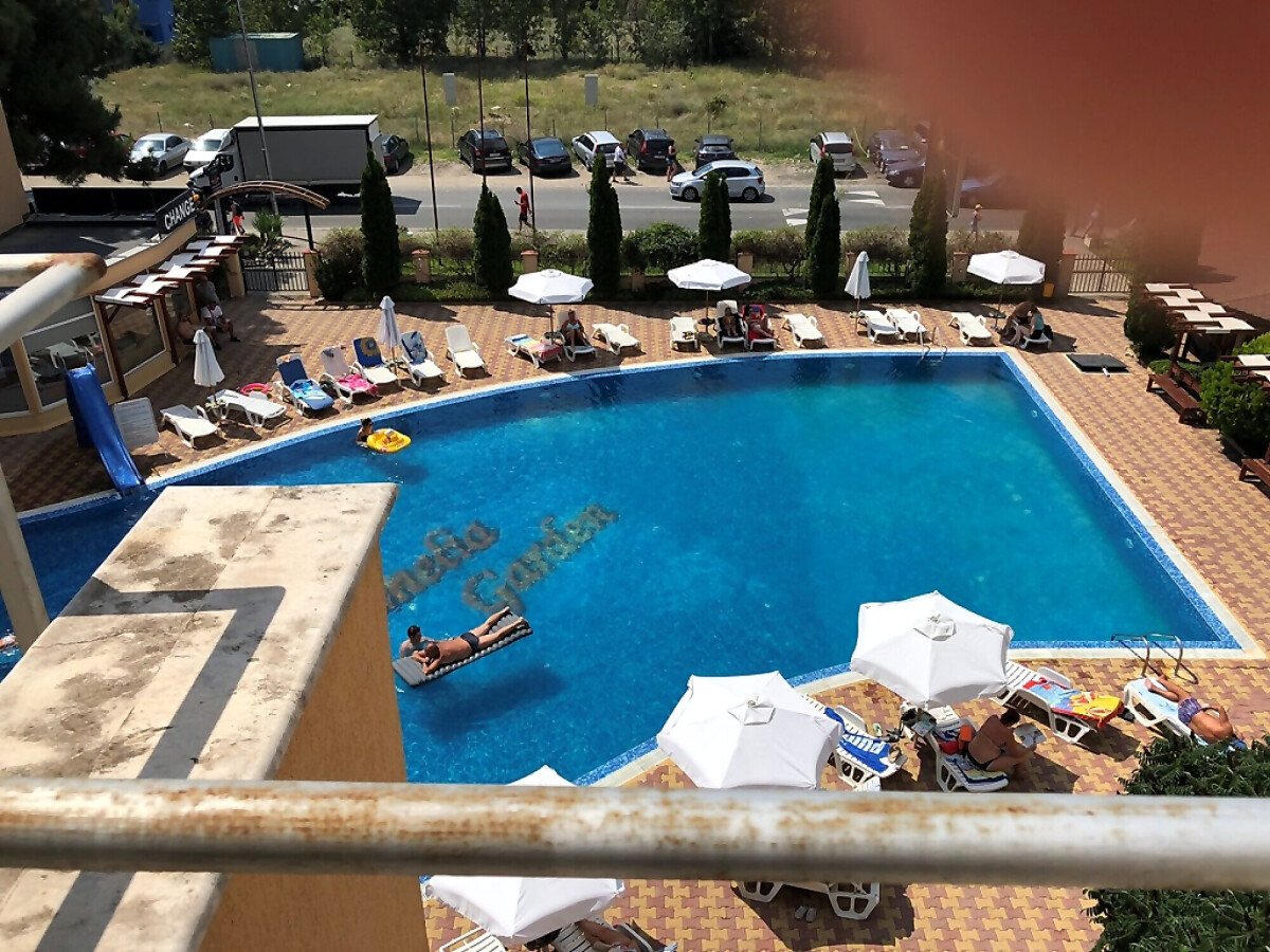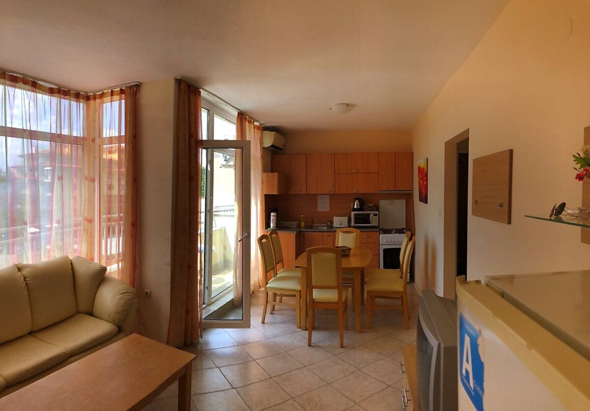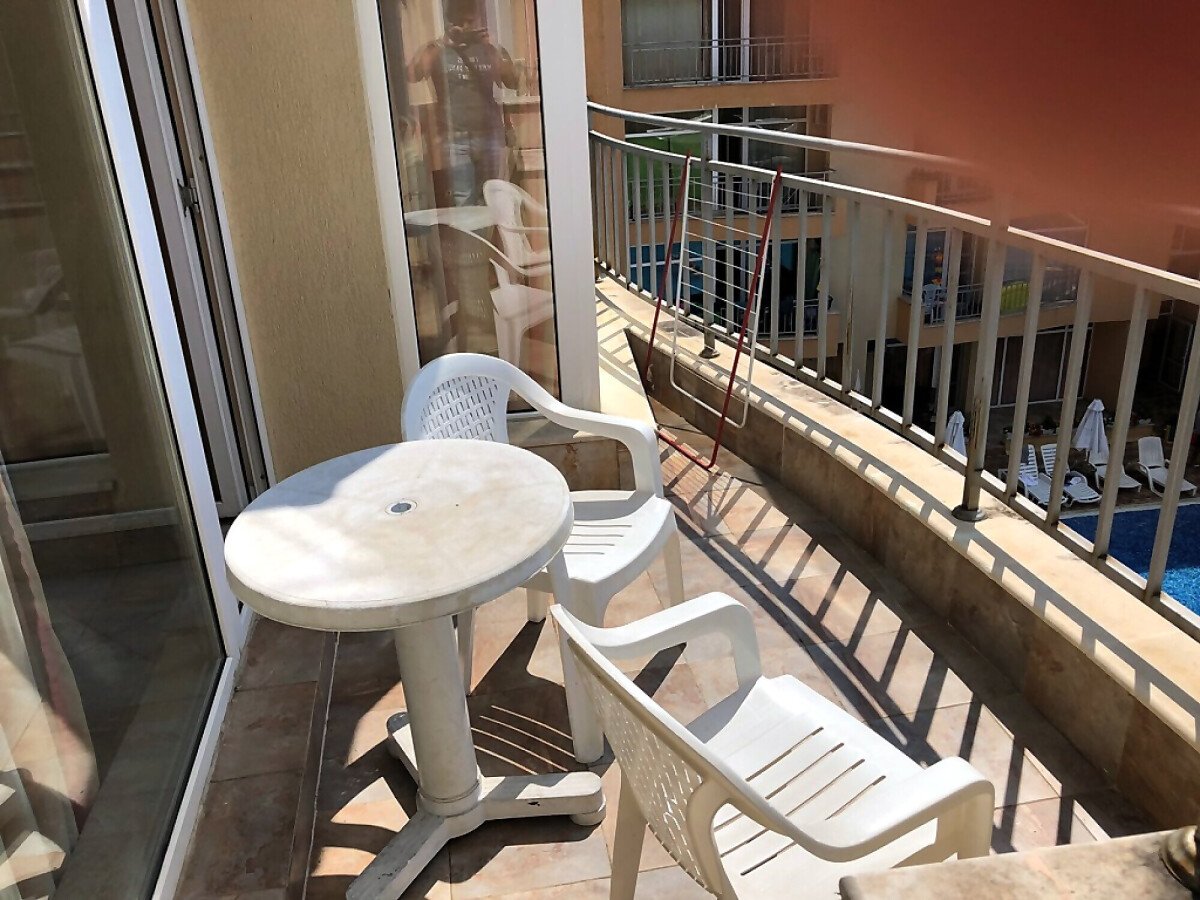 Апартаментът е в центъра на Слънчев Бряг и се намира на четвъртия етаж с гледка към басейна.