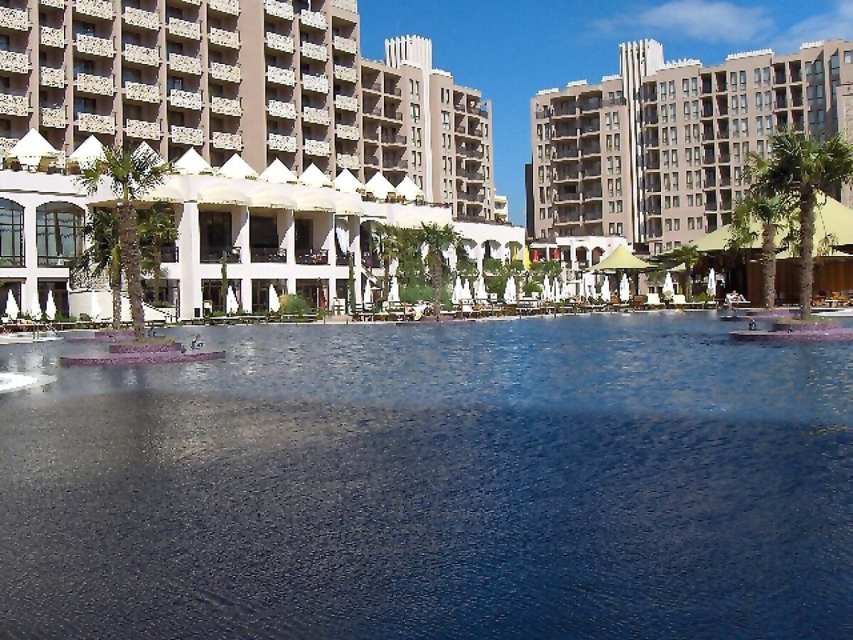 Този прекрасен комплекс разполага с изключително много удобства, като: 3 собствени ресторанта с интернационална кухня, барове работещи и през деня и нощта, луксозен СПА център с всички удобства. Комплексът също така има и различни басейни, спортен център с най-различни фитнес уреди, конферентни зали удобни за презентации и събирания, подземен охраняем паркинг и много други активности, които биха направили престоя Ви благоприятен и уютен.