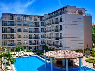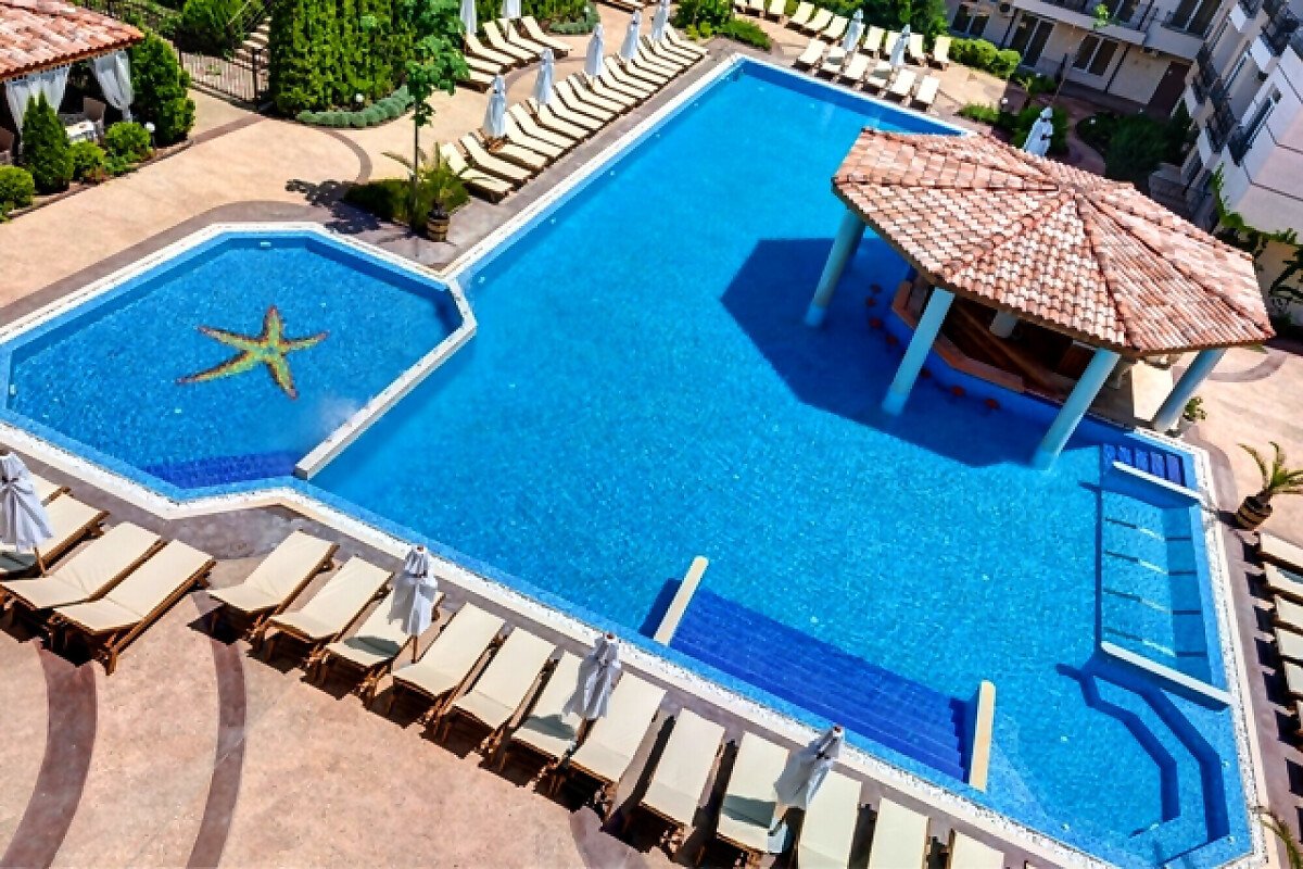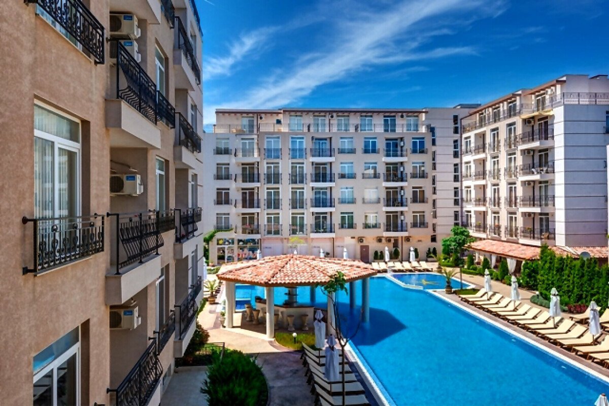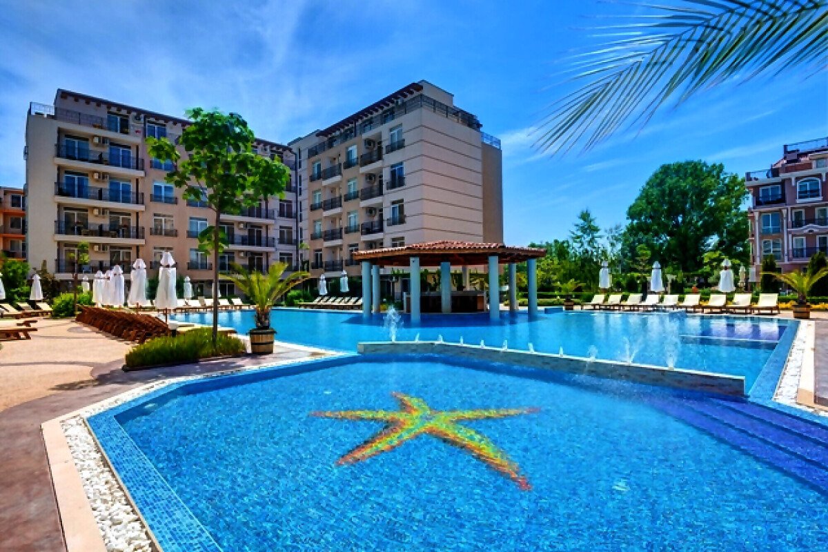 БГ ПРОПЪРТИ ИНВЕСТ Ви предоставя възможността да притежавате апратамент с една спалня в Апартхотел Даун Парк с гледка към басейна.