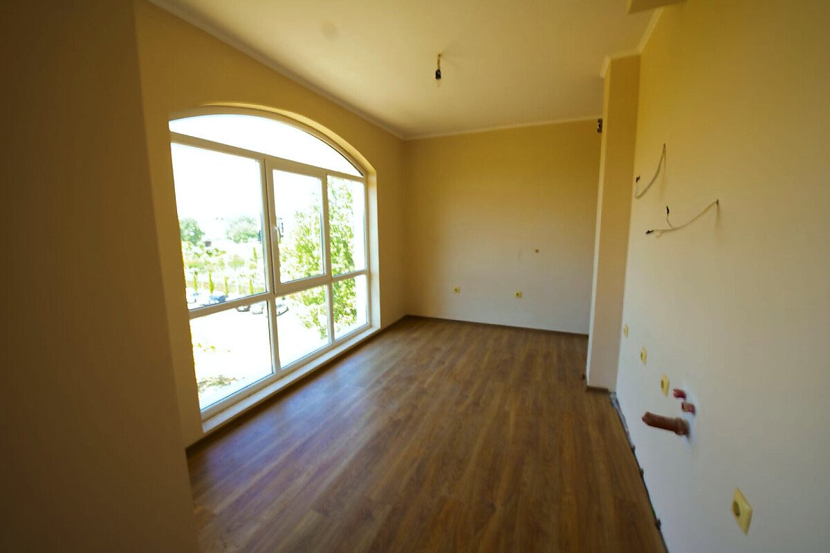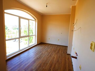 Студиото се намира на 3-ти етаж и се простира на 34 м2 и е необзаведено. Има една стая, която може да бъде преустроена в спалня с хол и кухненски бокс, една баня и тераса с гледка към градината.