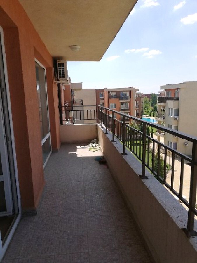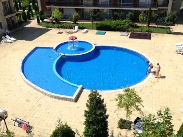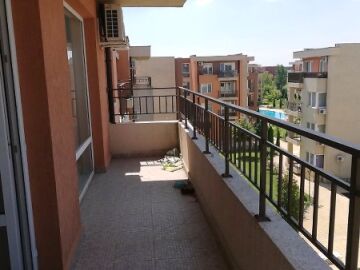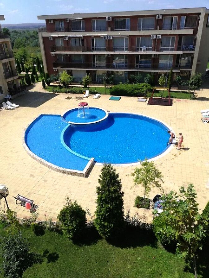 Апартаментът се намира на 4-ти етаж и е напълно обзаведен. На площ от 69 м2 и с гледка към басейна, градината и голф игрището.