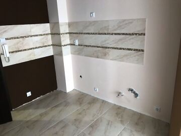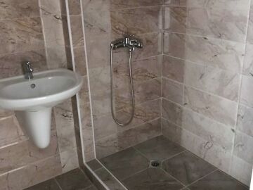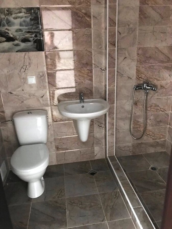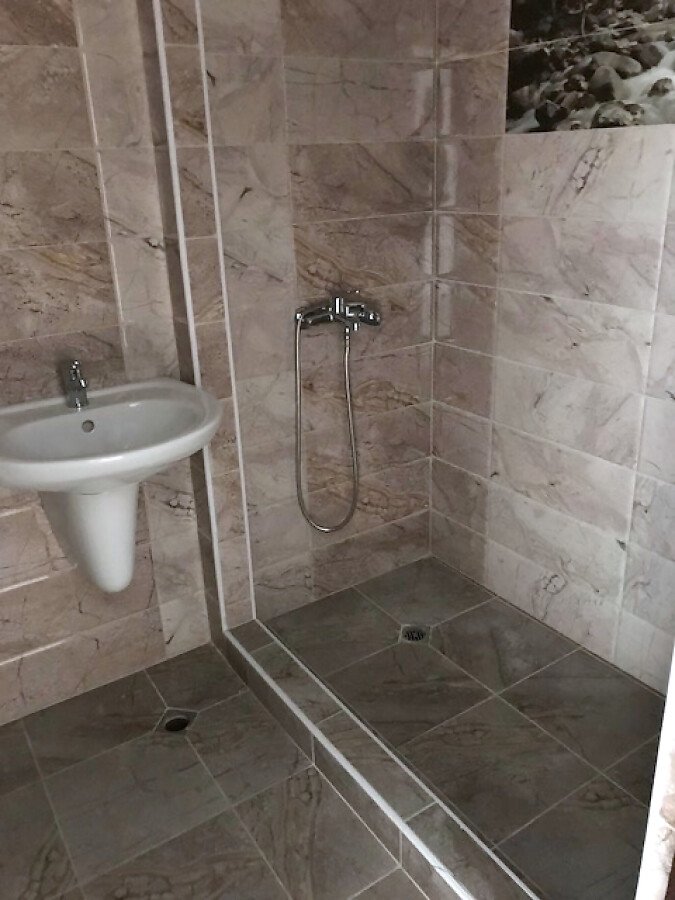 Жилището е с изцяло оборудвана баня, поставена подова настилка, интериорни врати.