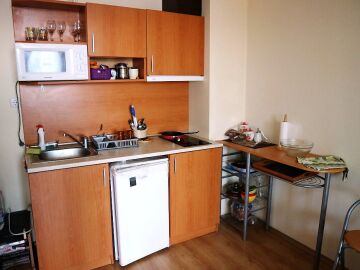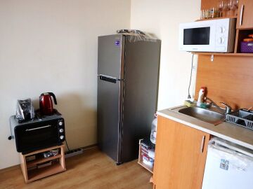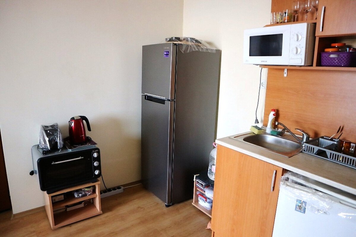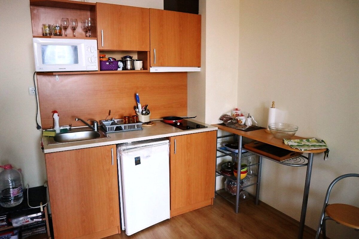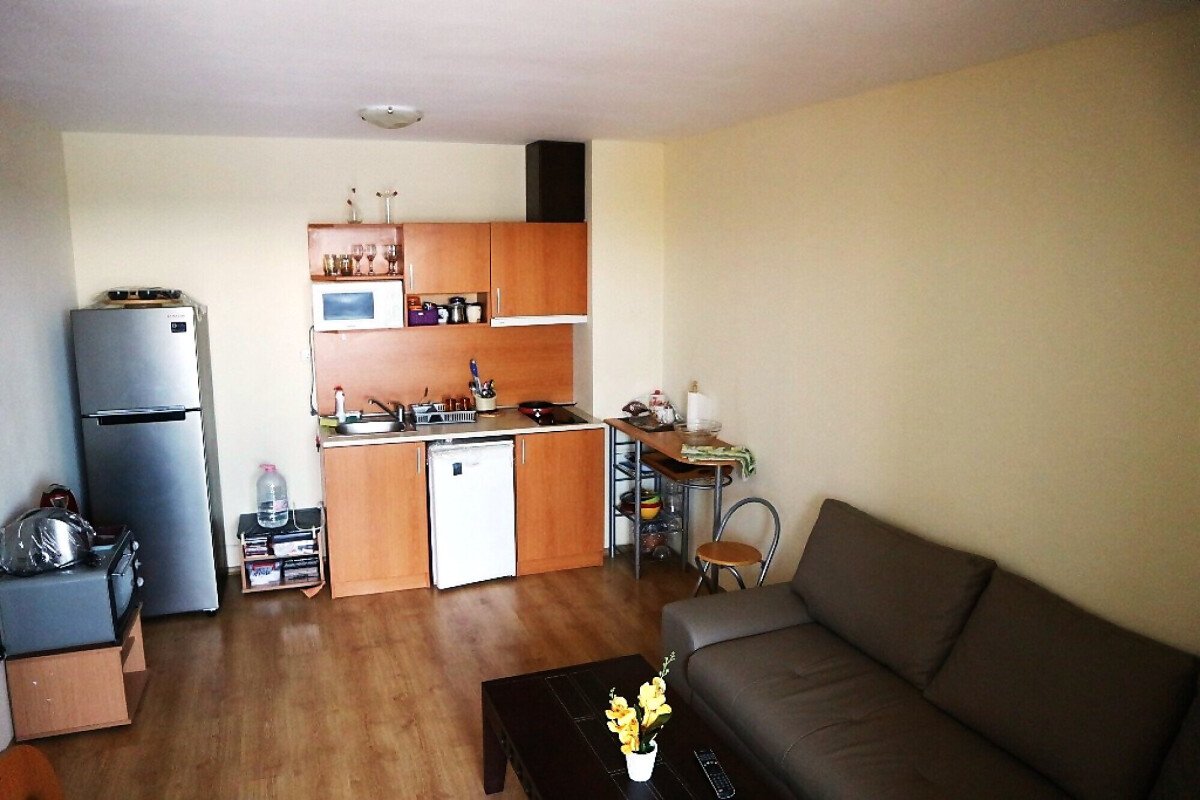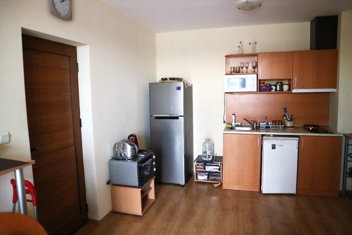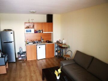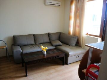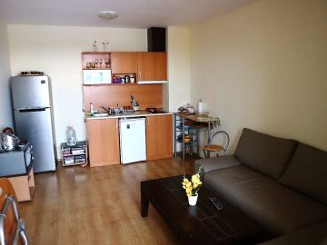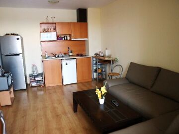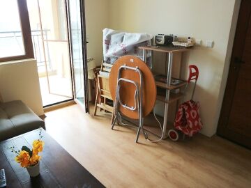 Апартамента е готов за нанасяне. Може да бъде отдаван под наем или да бъде целогодишно обитаван, понеже около комплекса всичко работи целогодишно.