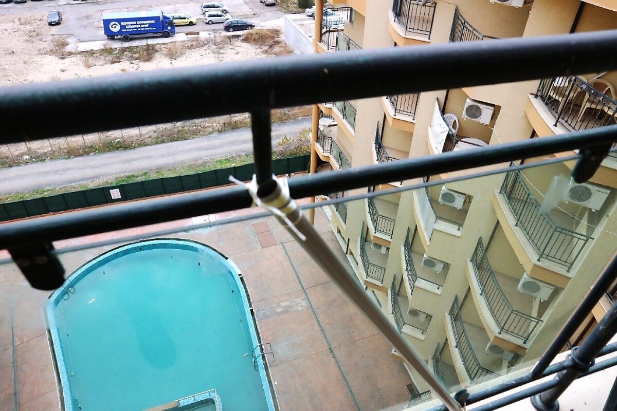 Апартамента, който Ви предлагаме е с гледка към басейна и е разположен на 7-ми етаж. Разположен на 65 м2. Състои се от хол с оборудвана кухня, спалня, баня и тераса с гледка към басейна.