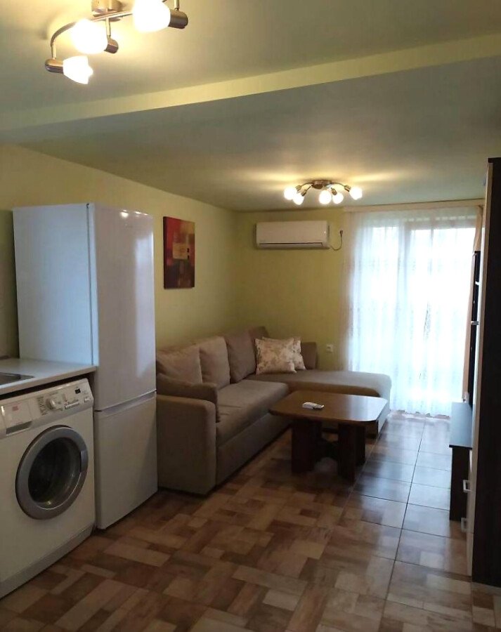 Състои се от всекидневна с кухня, 2 спални, баня-тоалетна. Кухнята е оборудвана с кермични котлони, фурна, хладилник-фризер, пералня.