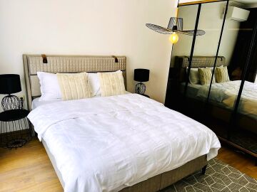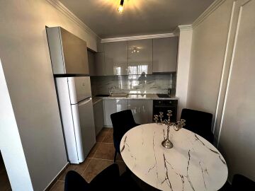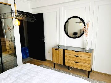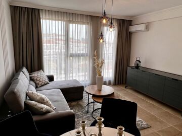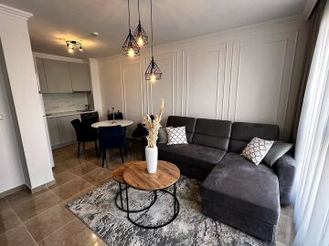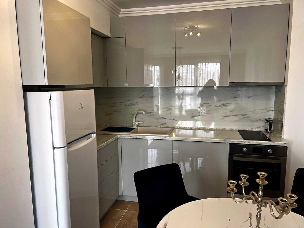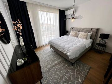 Апартаментът е на 4-ти жилищен етаж, върху 61 кв.м. площ. От него се открива прекрасна гледка към Черно Море, улицата и гората. Състои се от просторен хол с кухня, широка спалня, баня и тераса, на която можете спокойно да прекарвате следобедите си. Обзаведен е с чисто нови и стилни мебели, оборудван с нова и качествена техника, в идеално състояние!