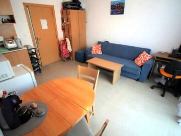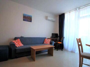 Състои се от хол с кухненски бокс, спалня, баня и тераса с гледка към градината. Продава се напълно обзаведена и оборудвана и е готова за нанасяне. Имате възможност да превърнете този апртамент във Вашият мечтан дом на морето или да го отдавате под наем за допълнително заплащане.