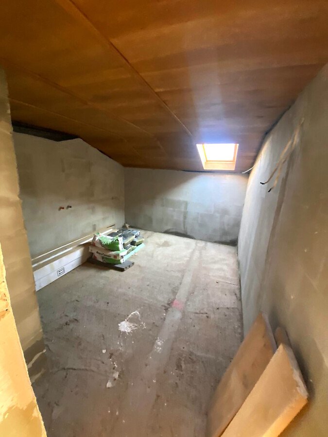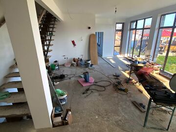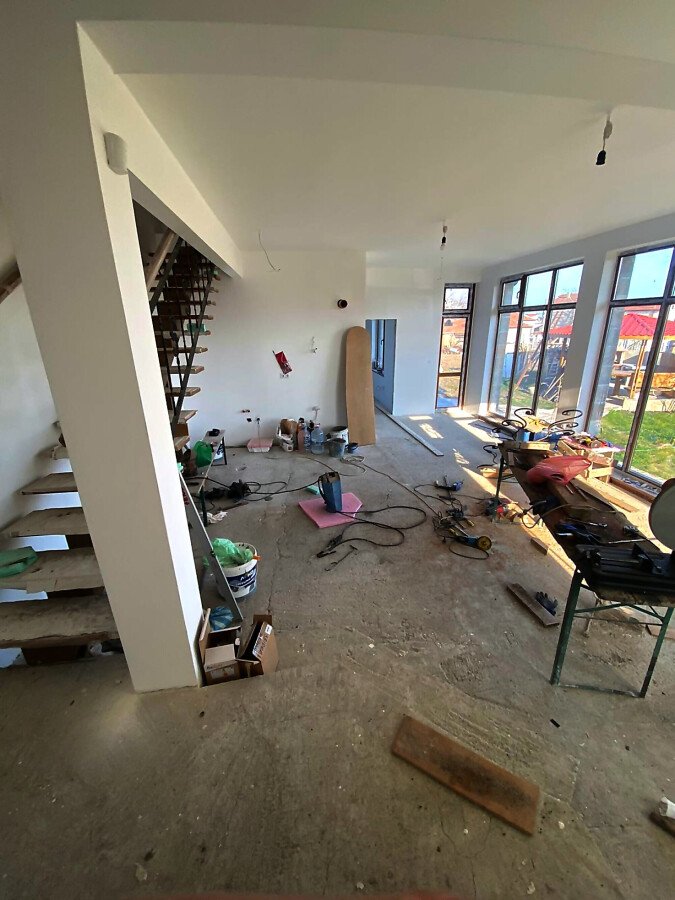 - 1 етаж – хол с кухня, спалня, баня с тоалетна и изход към градината.