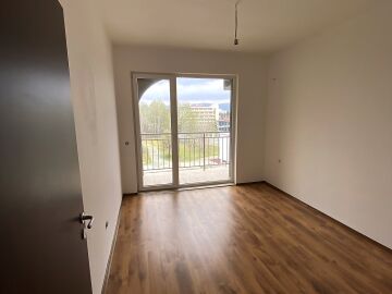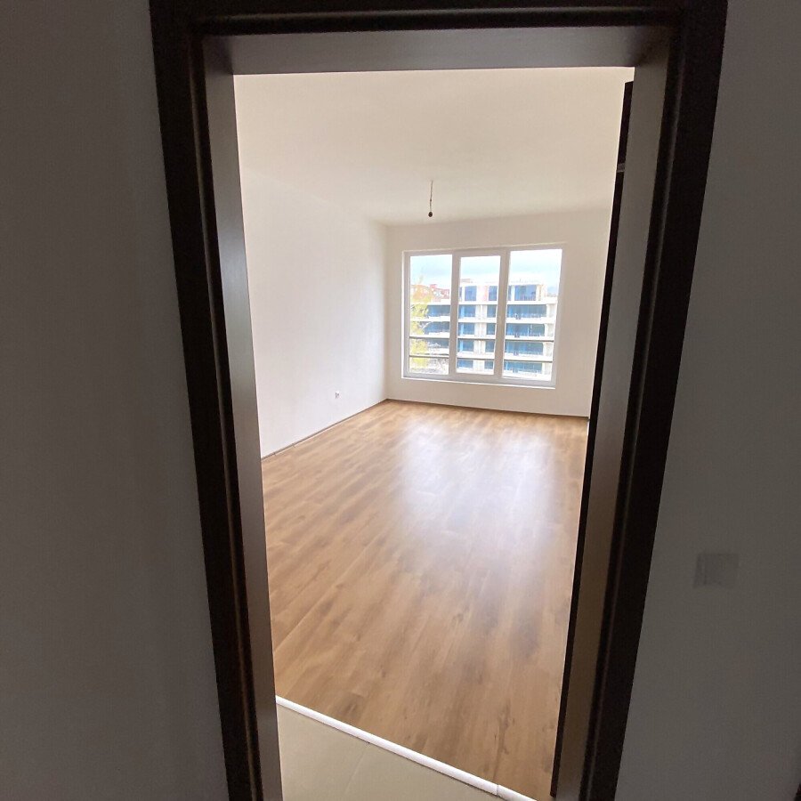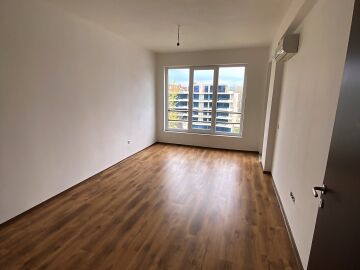 Жилището се намира на 5-ти етаж, състои се от една спалня, хол с кухненски бокс, баня и просторна тераса. Площта му е 66 кв.м. Необзаведено е и е готово да бъде направено по Ваш вкус.
