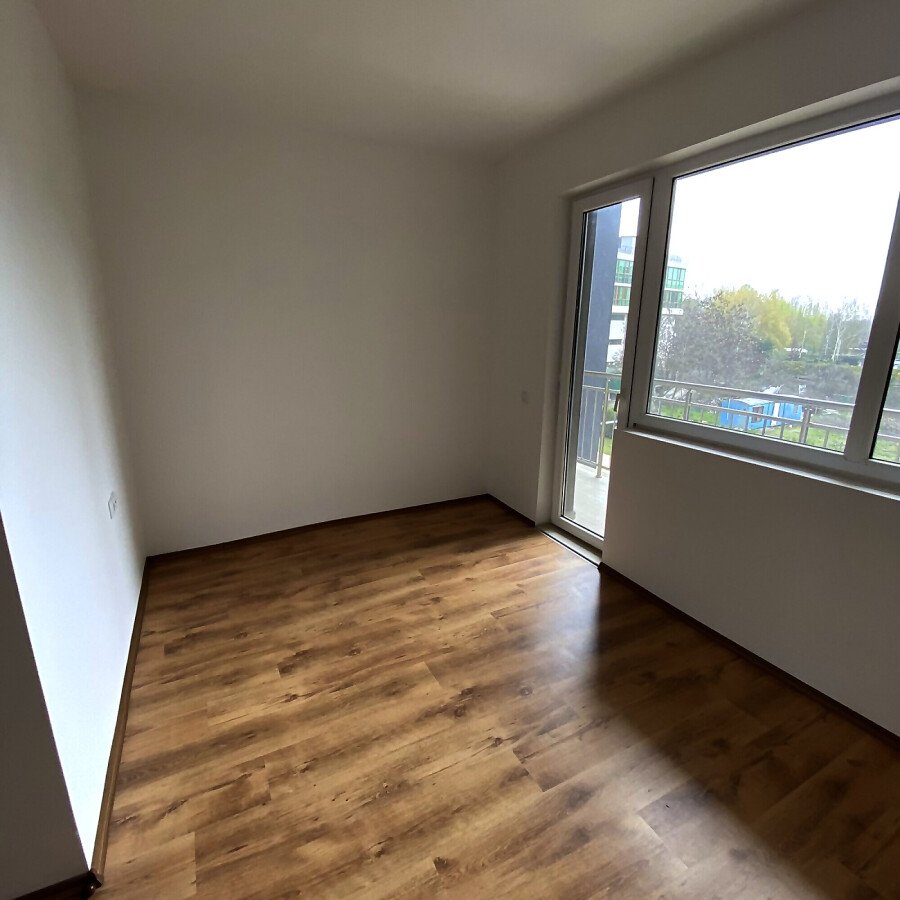 Жилището се намира на 3-ти етаж, състои се от една спалня, хол с кухненски бокс, баня и просторна тераса. Площта му е 83 кв.м. Необзаведено е и е готово да бъде направено по Ваш вкус.