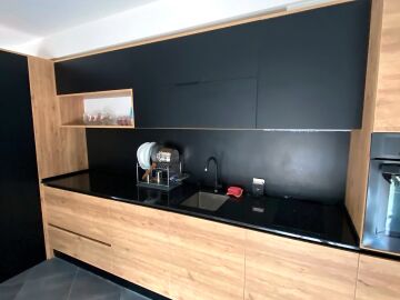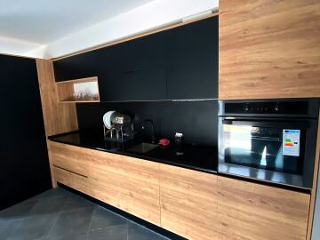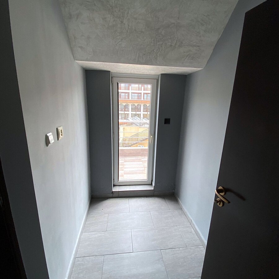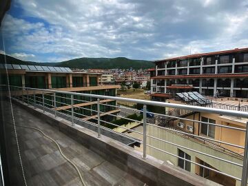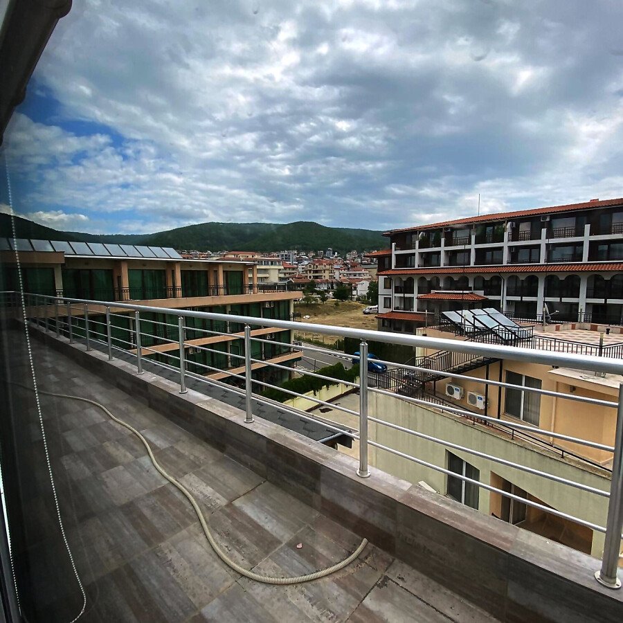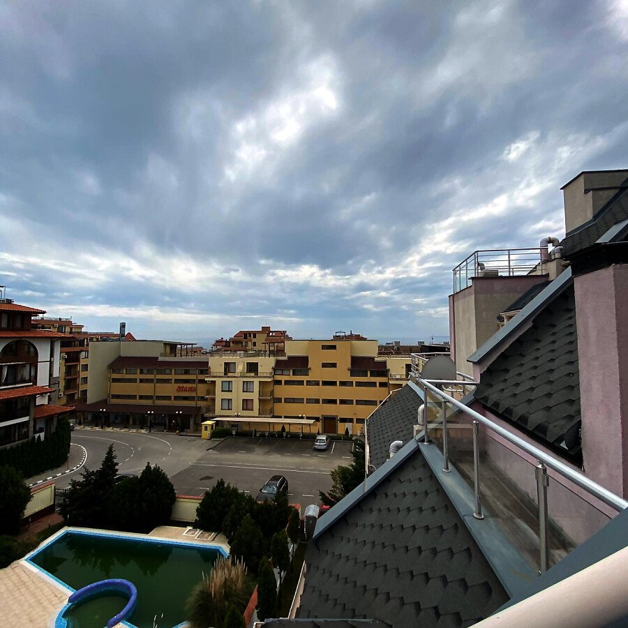 Сградата е добре поддържна и озеленена. Има беседка, барбекю, паркинг, вътрешна зона за отдих и място на което могат да си играят деца. Студиото се състои от хол с кухненски бокс, една спалня,баня и тераса с гледка към морето, планината, улицата и градината. Уютен, светъл и просторен, този апартамент е обзаведен и готов за нанасяне.